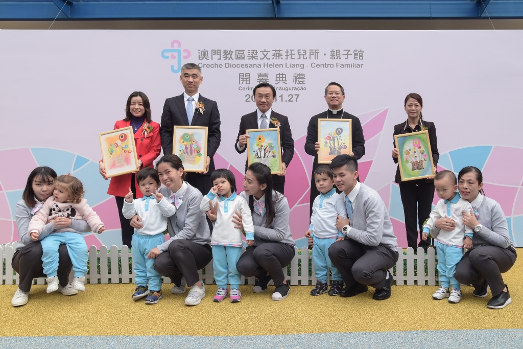 由社會工作局委託澳門教區管理和營運的澳門教區梁文燕托兒所及親子館今(27)日舉行開幕典禮,社會文化司譚俊榮司長及一眾嘉賓主持啟動儀式,期間參觀托兒所及親子館及聽取相關簡報。