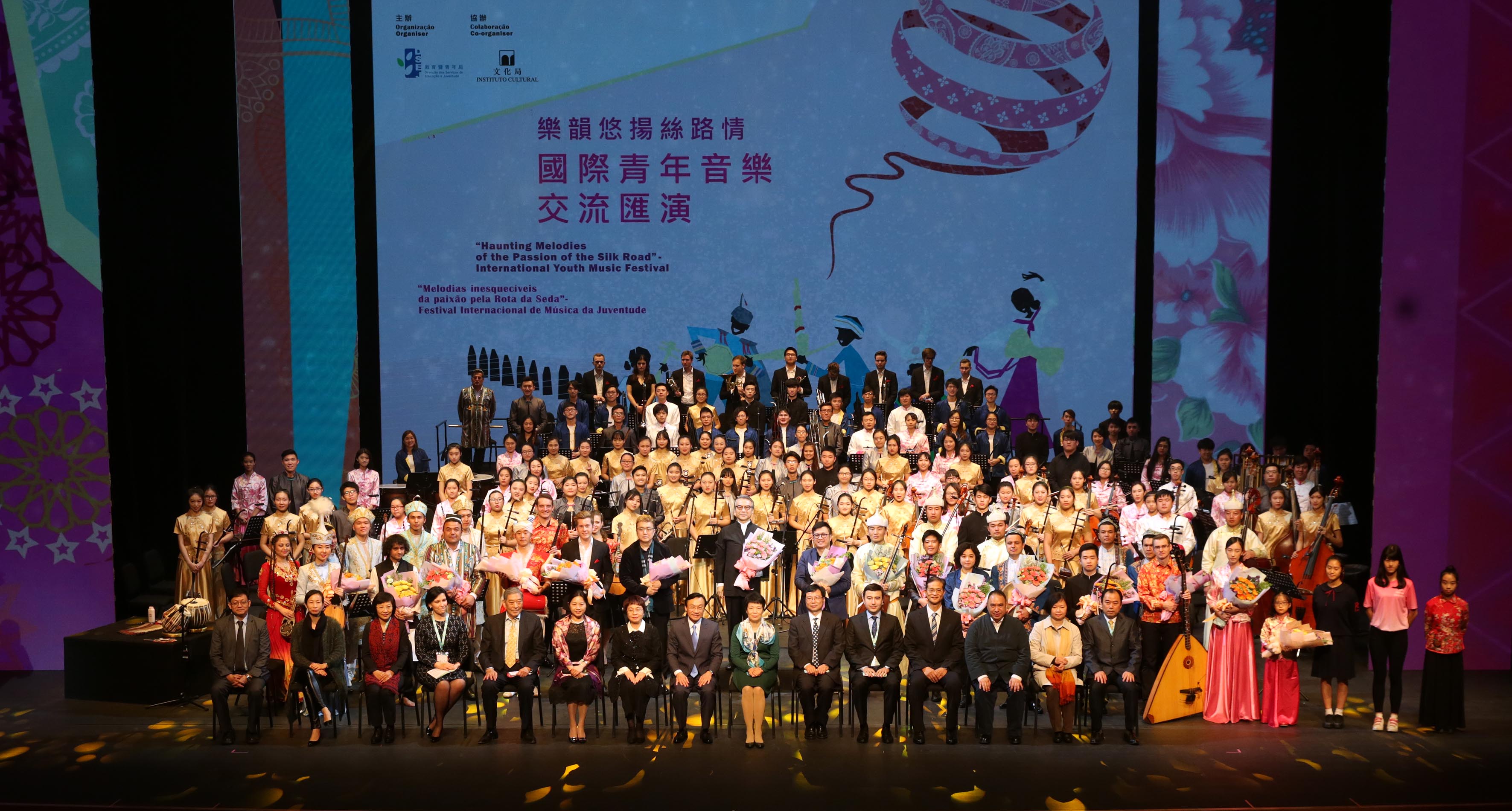 由教育暨青年局主辦、文化局協辦的“樂韻悠揚絲路情”國際青年音樂交流匯演室內閉幕演出於2017年11月26日假澳門文化中心綜合劇院圓滿結束。來自“一帶一路”沿線國家和地區及本地的400多名青年音樂演出者歡聚澳門,以音樂表達絲路文化和歷史。社會文化司司長譚俊榮、中國人民解放軍駐澳部隊司令員王文、教育暨青年局局長梁勵、中央人民政府駐澳門特別行政區聯絡辦公室教育與青年工作部部長徐婷及台灣事務部部長徐莽、中華人民共和國外交部駐澳門特別行政區特派員公署特派員夫人邱薇薇參贊、中國教育部體育衛生與藝術教育司副巡視員萬麗君、國家民族事務委員會港澳台辦公室副巡視員蘭海濱、旅遊學院院長黃竹君、哈薩克斯坦駐香港總領事館代總領事、俄羅斯駐香港總領事館副領事、社會文化司司長辦公室顧問惠程勇、中華民族團結促進會會長黃永謙、教育暨青年局副局長老柏生及梁慧琪等嘉賓出席欣賞當晚的演出,並與全體音樂演出者合照留念,氣氛動人溫馨。