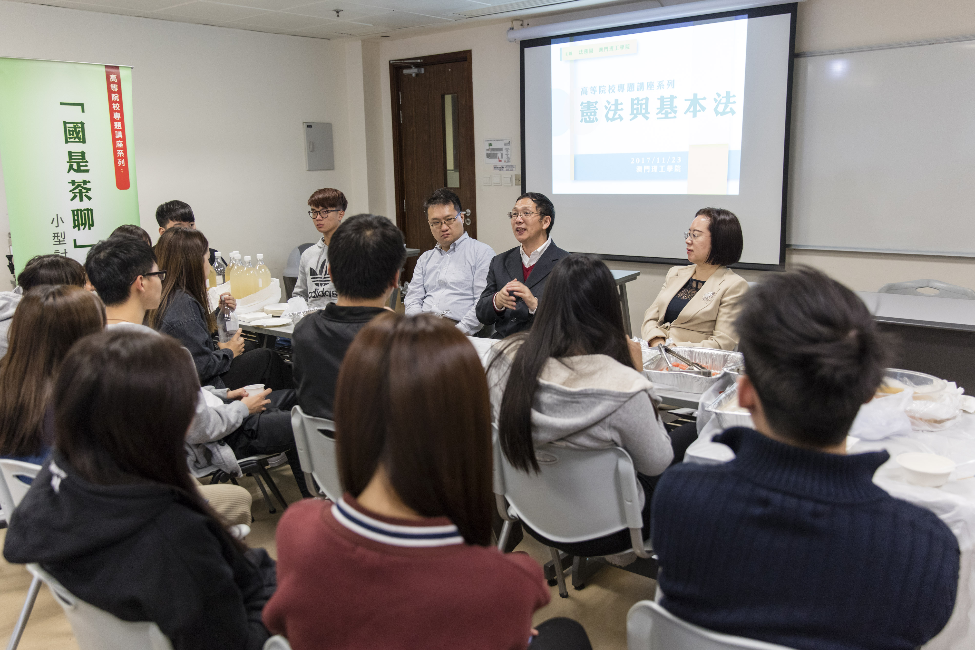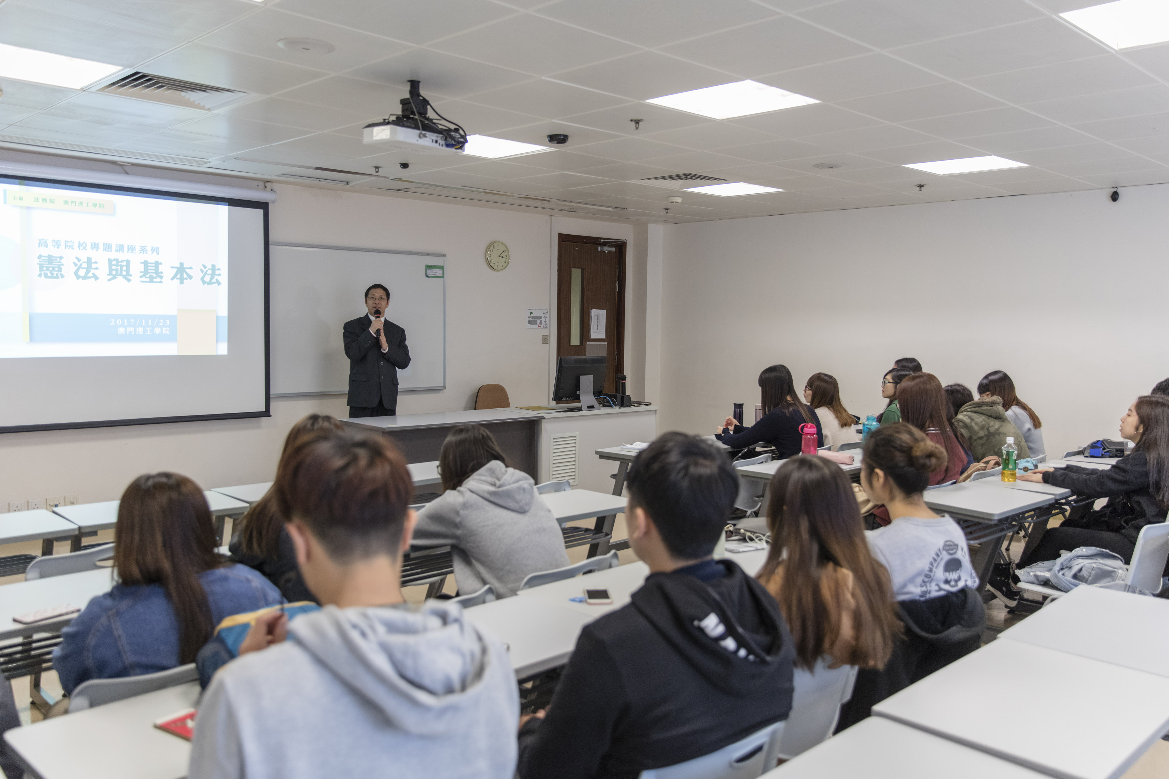 法務局於本年第四次走進高校,與澳門理工學院合辦高等院校憲法與基本法專題系列活動,分別舉辦“憲法和基本法專題講座”及“國是茶聊”小型討論會。