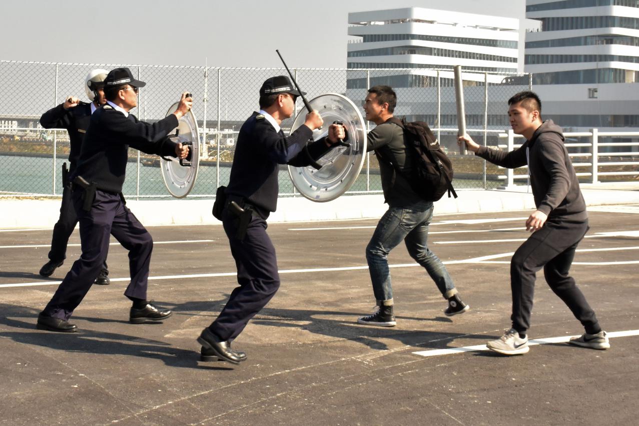首日演練於17日上午在澳門填海A區舉行,模擬海關透過點對點聯絡機制收到內地邊防通知,有4名非法入境者從港珠澳大橋人工島偷渡進入澳門填海A區。海關接報後隨即派遣沿岸巡邏關員及巡邏快艇進行搜索及堵截,期間有非法入境者持刀反抗及趁機逃走,關員立即要求增援及通知無人機小組協助追查在逃人士下落,最終成功將所有非法入境者截獲。