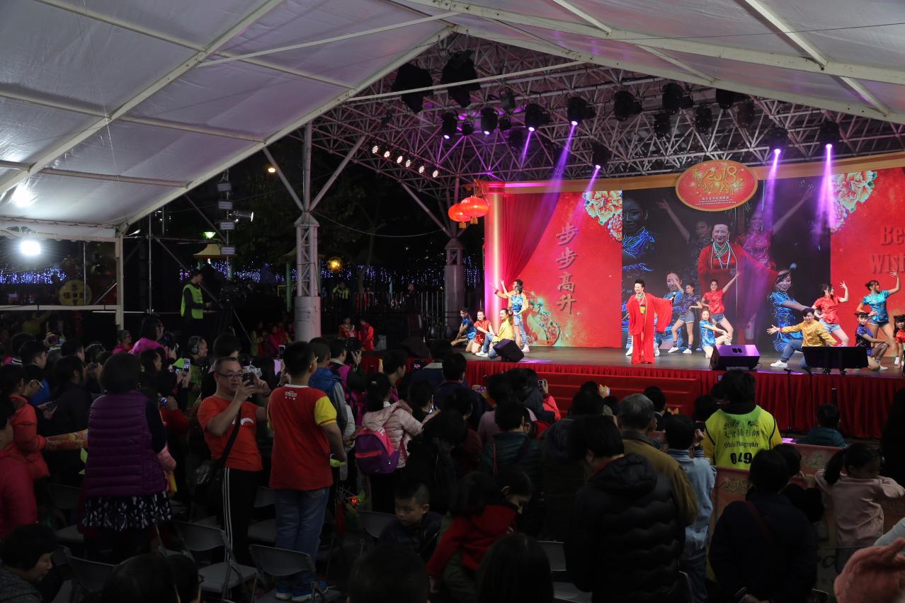 在祐漢街市公園的壓軸文藝表演由港澳藝人歌手,包括:薛家燕、彭永琛、羅凱瑩、歐陽日華、林俊傑、馬檇鏗及多隊舞蹈表演團隊為觀眾帶來連串精彩的演出。家燕姐送上一曲家傳戶曉的皆大歡喜令全場觀眾情緒高漲。阮小儀、古卓文、李若瀅及陳庭鋒四位司儀亦為活動倍添熱鬧氣氛。