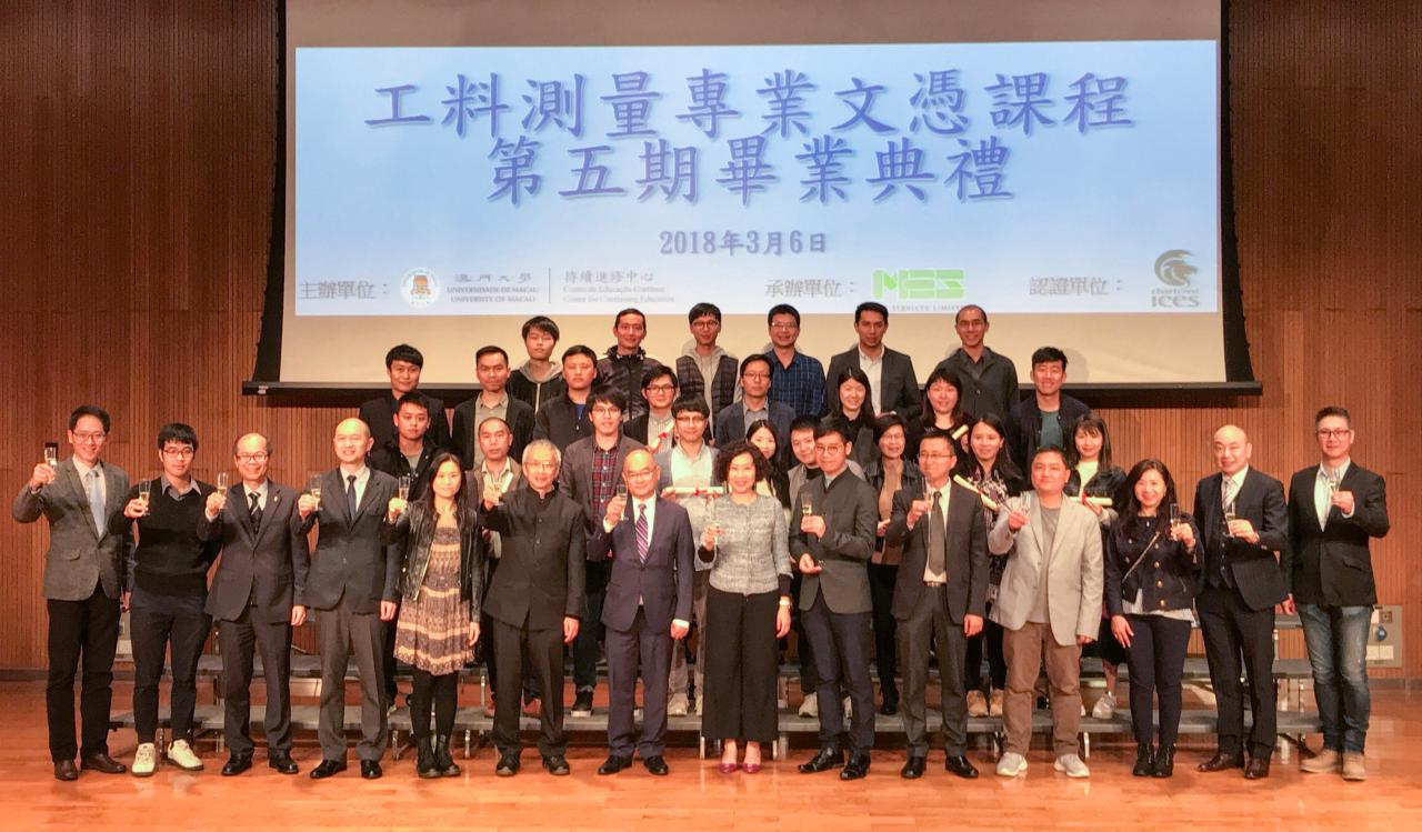 澳門大學持續進修中心日前舉行第五期“工料測量專業文憑課程"畢業典禮,共有28名學員順利取得文憑,同時亦獲英國皇家特許土木工程測量師學會專業認證資格。