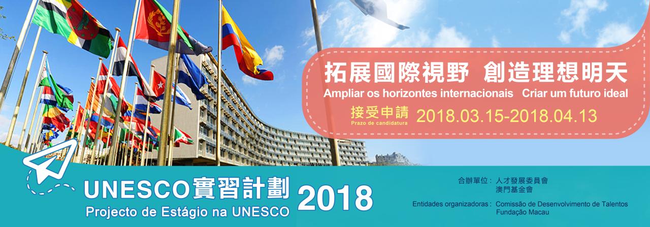 人才發展委員會與澳門基金會於2018年繼續推出 “聯合國教科文組織(UNESCO)實習計劃”,報名期3月15日至4月13日,歡迎有興趣人士把握機會,踴躍申請。