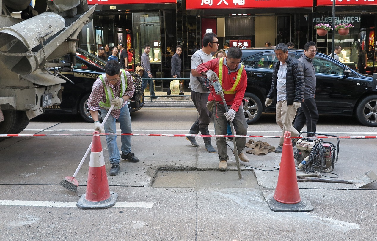 民署人員到現場,發現有關地點出現凹陷孔洞,經詳細檢查渠道後,發現有關路面的舊式石板渠石塊之間的空隙出現輕微滲漏現象,同時混凝土路面伸縮縫有脫落的情況,雨水經由路面伸縮縫進入泥土,有機會造成水土流失,鄰近路面亦出現輕微的水土流失現象,故評估出現是次路陷的原因與水土流失有關。