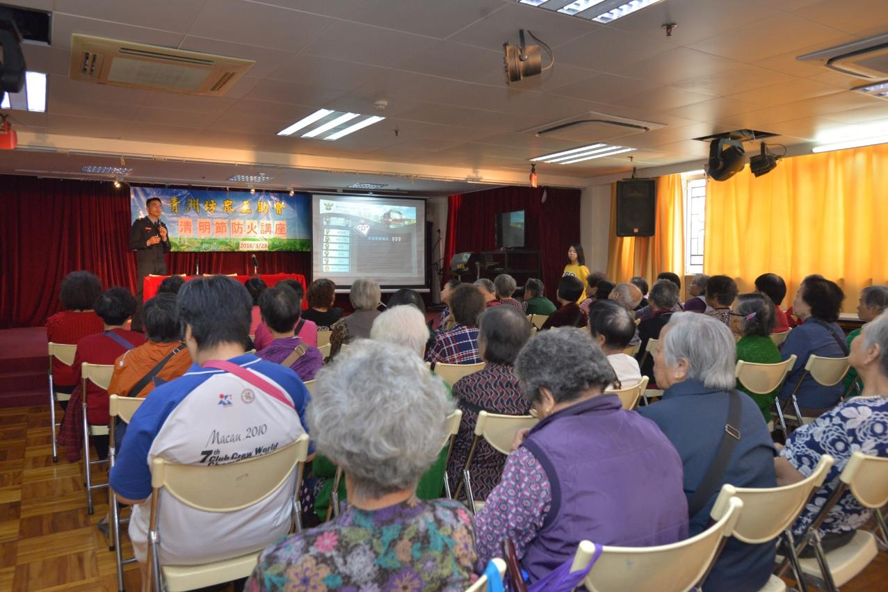 消防局於清明節前夕分別拜訪“水荷雀坊眾互助會”、“青洲坊眾互助會”及“澳門工會聯合總會”,座談期間本局介紹了清明節的防火宣傳工作及行動部署,並就防火、滅火及救援等工作交換意見,及後聯同其會員、義工一同到區內派發宣傳單張及張貼海報;同時亦為上述坊會及團體的會員以及區內一帶居民進行防火、救護及燃料安全講座,從而強化區內居民的消防安全意識,活動期間警察總局亦會派員到場為居民講解民防知識,藉此加強居民的防災意識。