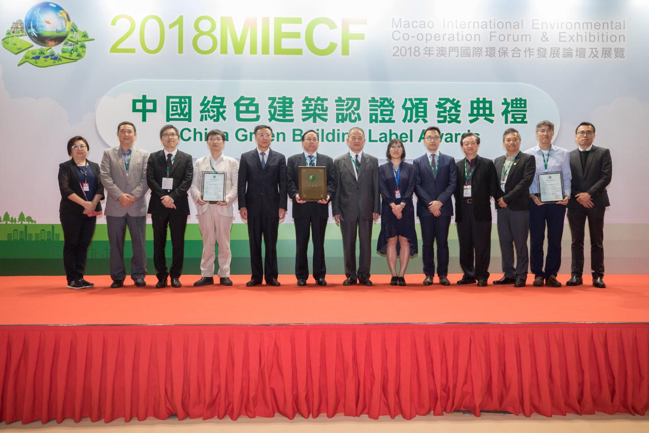 證書頒發儀式今(13)日在“2018澳門國際環保合作發展論壇及展覽"(MIECF)舉行,由中國城市科學研究會綠色建築專家委員會主任王有為向澳大副校長(學術)倪明選授予證書。