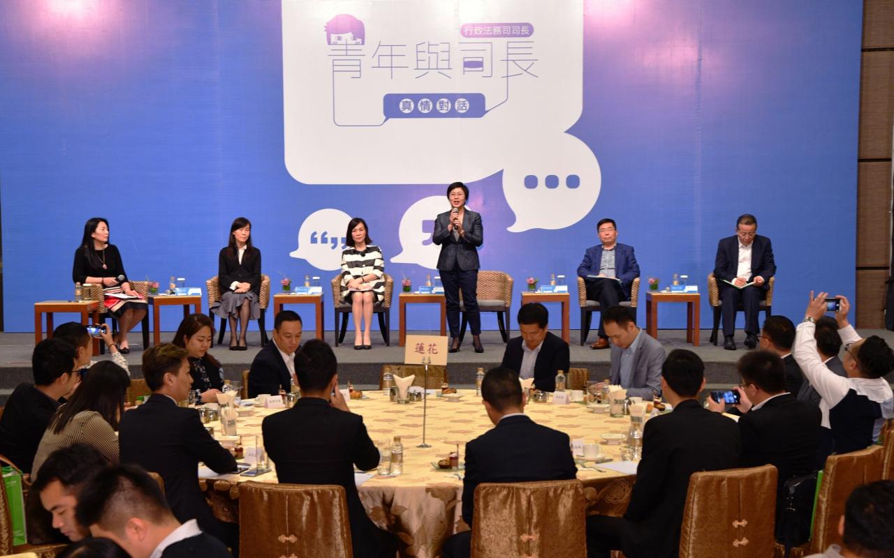 座談會於4月10日晚上在澳門旅遊塔舉行,行政法務司司長陳海帆、行政公職局代局長馮若儀、法務局局長劉德學、身份證明局局長歐陽瑜和民政總署管理委員會主席戴祖義,與逾百名來自本澳16個青年社團的代表進行交流,並藉此構建與青年人互動的交流平台。