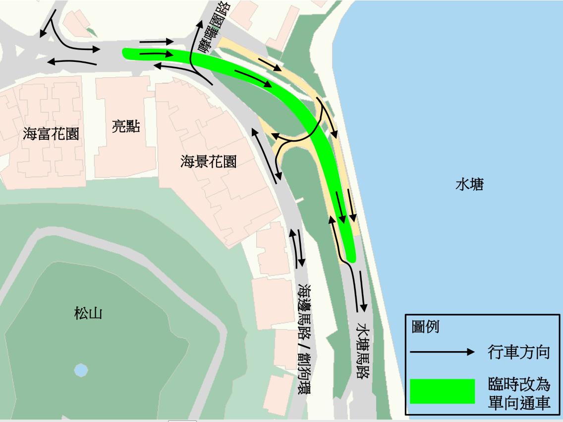 因電纜鋪設,4月18日起,水塘馬路臨時改單向往羅理基博士大馬路方向行車,前往士多鳥拜斯大馬路之車輛需取道水塘馬路行車天橋行駛。32(往筷子基總站)路線自首班車起改道松山隧道行駛,暫不停靠“水塘馬路”、“二龍喉公園”及“高士德/培正”站,工期13日。
