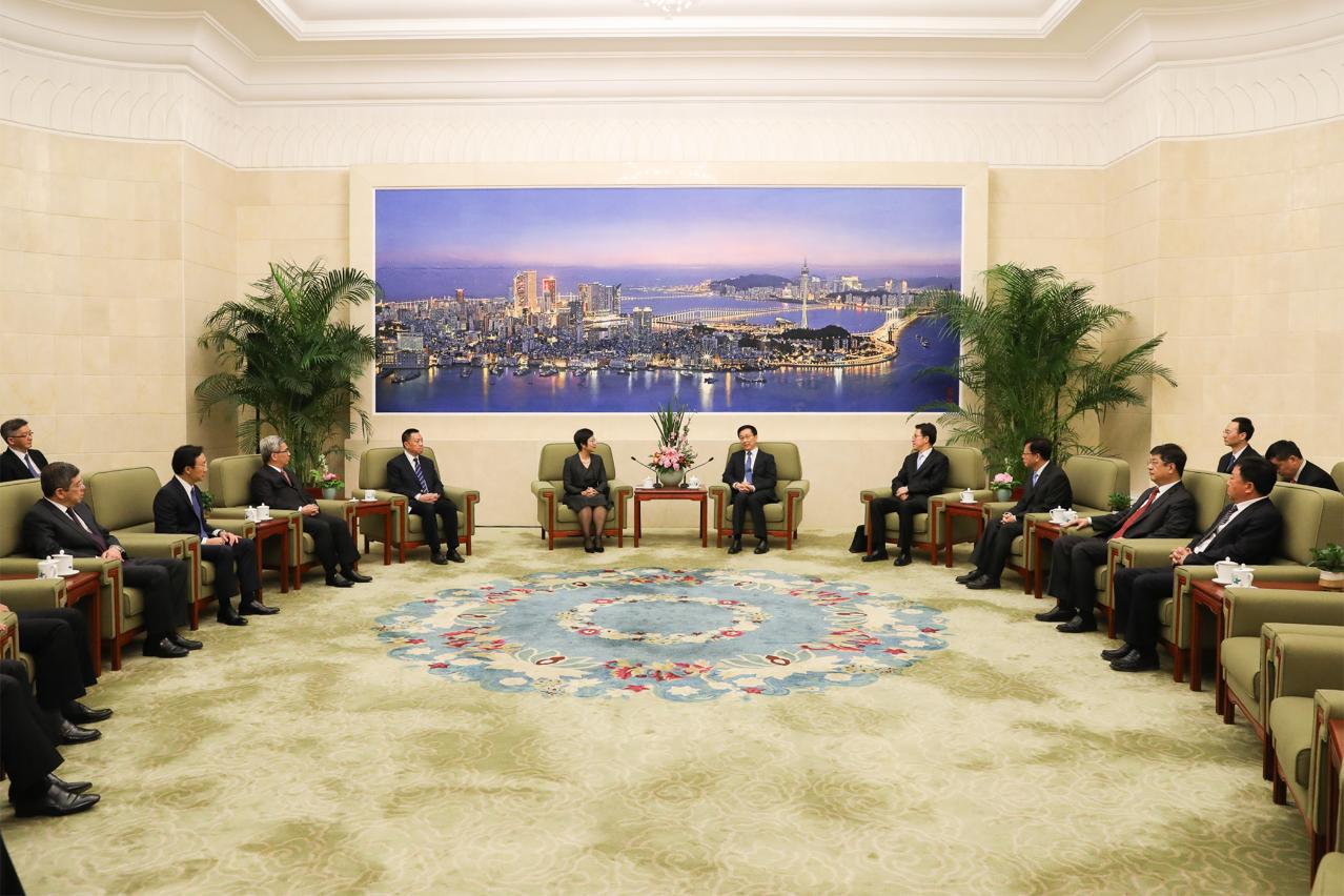 參加會見的還有國務院港澳辦主任張曉明、國務院副秘書長丁學東、中央駐澳聯絡辦公室主任鄭曉松、國家行政學院常務副院長何毅亭,以及行政法務司司長陳海帆、經濟財政司司長梁維特、保安司司長黃少澤、社會文化司司長譚俊榮、運輸工務司司長羅立文、廉政專員張永春、審計長何永安、警察總局局長馬耀權、海關關長黃有力和檢察長葉迅生。