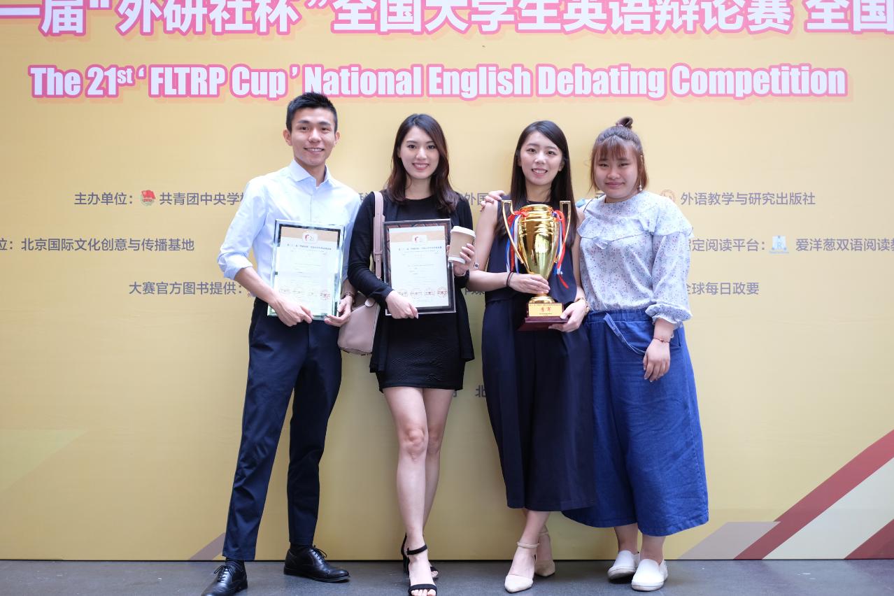 澳門大學英語辯論隊在第21屆“外研社杯”全國大學生英語辯論賽中,力壓全國100多支強隊奪得季軍,辯手張海琳和馮焯弘在224名辯手中並列第五。