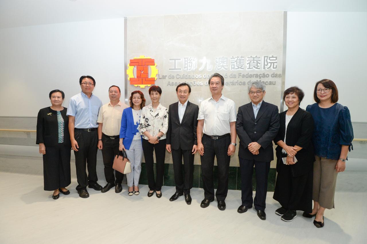陪同視察的有衛生局局長李展潤,社會工作局局長黃艷梅,衛生局副局長兼仁伯爵綜合醫院院長郭昌宇,衛生局副局長鄭成業、何鈺珊,社會工作局副局長許華寳,社會文化司司長辦公室顧問羅奕龍、戴華浩;澳門工會聯合總會會長陳錦鳴、副會長何雪卿、監事長梁玉華、理事長梁偉峰、護養院院長吳慧霞;澳門戒毒康復協會主管Augusto Nogueira等。