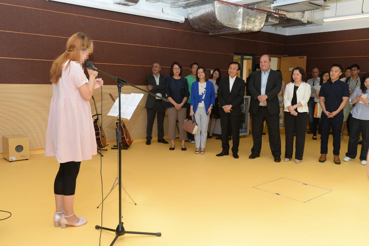 譚俊榮參觀了特殊照顧房間、藝術室、母嬰戒毒治療室、工作室、健身室及音樂室等設施,了解院友的起居生活和康復訓練情況。他勉勵院友積極接受治療,努力戒除藥癮、毒癮,學習多種技藝,祝願院友早日康復、重投社會、服務社群。他表示,社會工作局近年加大資源投入,聯同服務機構完善院舍設施,除努力協助更多的戒毒康復者重獲新生外,更提供探訪參觀、禁毒活動、社區預防教育及推廣工作,將預防濫藥和健康生活的正確訊息帶入社區與家庭。