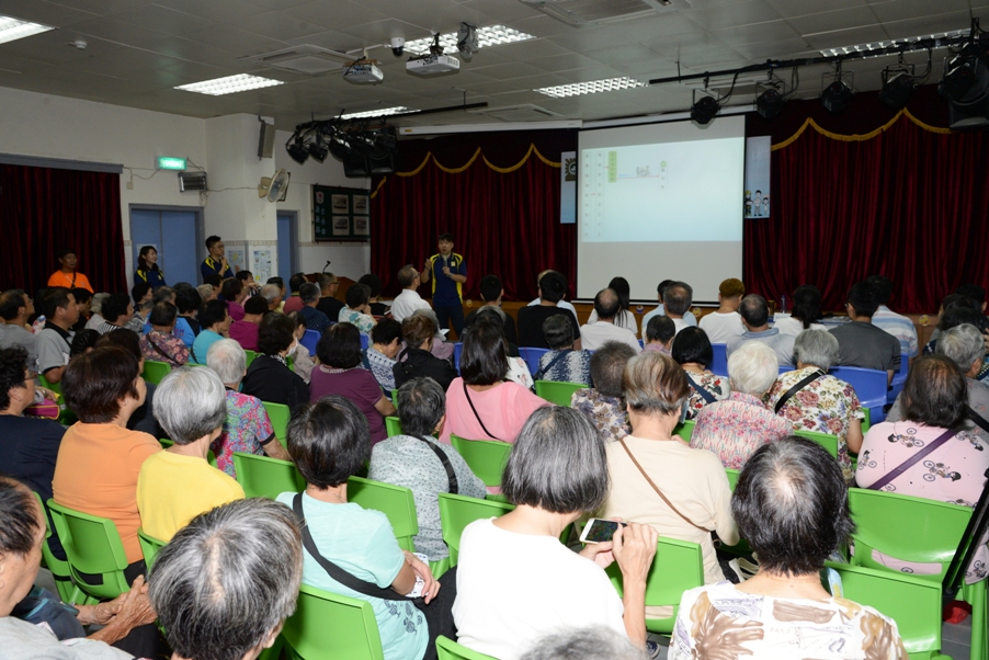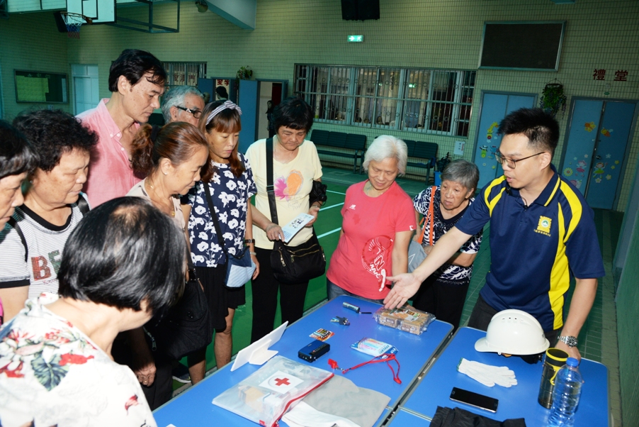 講解會上,司警局向居民介紹“颱風期間風暴潮低窪地區疏散撤離計劃”的目的及內容,該計劃是一個風暴潮災害預警及緊急通報疏散作業,旨在確保市民生命安全。當颱風期間引發風暴潮再加上天文大潮時,民防單位將遵照澳門特區政府指示啟動有關撤離計劃,居民須按照警方的指示有序撤離,前往安全地方或就近的避險中心;有需要協助人士可前往集合點,由警方協助前往避險中心,而街區坊會亦會協助通知居民有關撤離資訊。司警局向居民講解警方制定的安全撤離路線及撤離時應注意的事項,以及提醒居民須瞭解正確的求生知識,日常亦應做好防災應急準備,於家中存放適量的防災用品,如水、食物、藥物、電筒、收音機等,以應付突如其來的災害。司警局人員並即場展示應急包內需準備的物品,以加深居民對防災應急準備的印象。