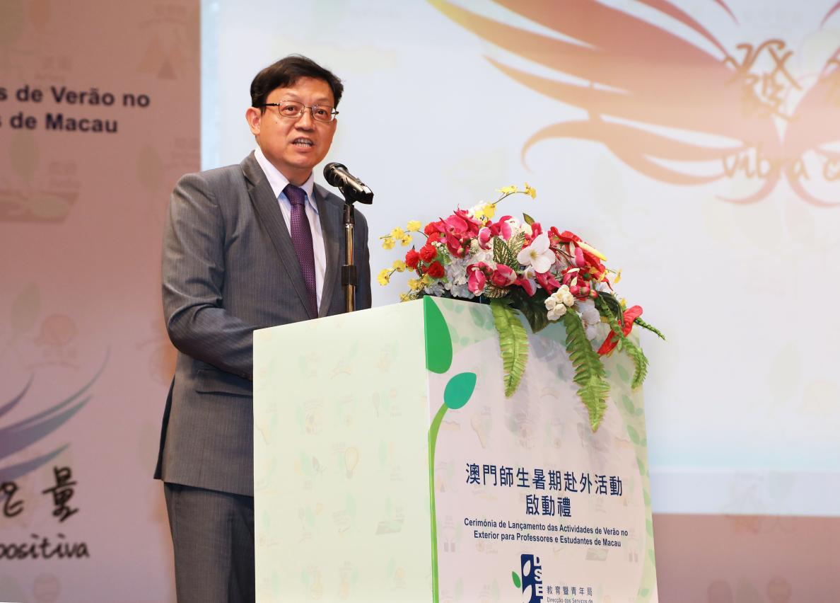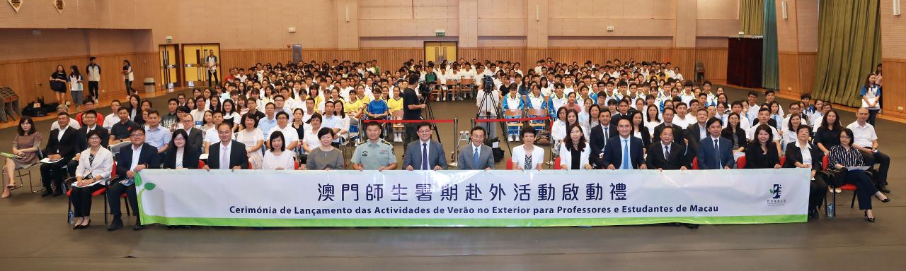 “澳門師生暑期赴外活動啟動禮”於7月5日下午在教業中學舉行。社會文化司司長譚俊榮、教青局局長老柏生、中央人民政府駐澳門特別行政區聯絡辦公室教育與青年工作部徐婷部長、中國人民解放軍駐澳門部隊高志軍大校、中華人民共和國外交部駐澳門特別行政區特派員公署公共外交及新聞部朱婷副主任、教青局副局長梁慧琪和龔志明、青年事務委員會委員、教學人員專業委員會委員、澳門中華教育會代表、澳門天主教學學校聯會代表、澳門公職教育協會代表、合作機構代表、各校校長及各代表團約500名師生出席了啟動禮。