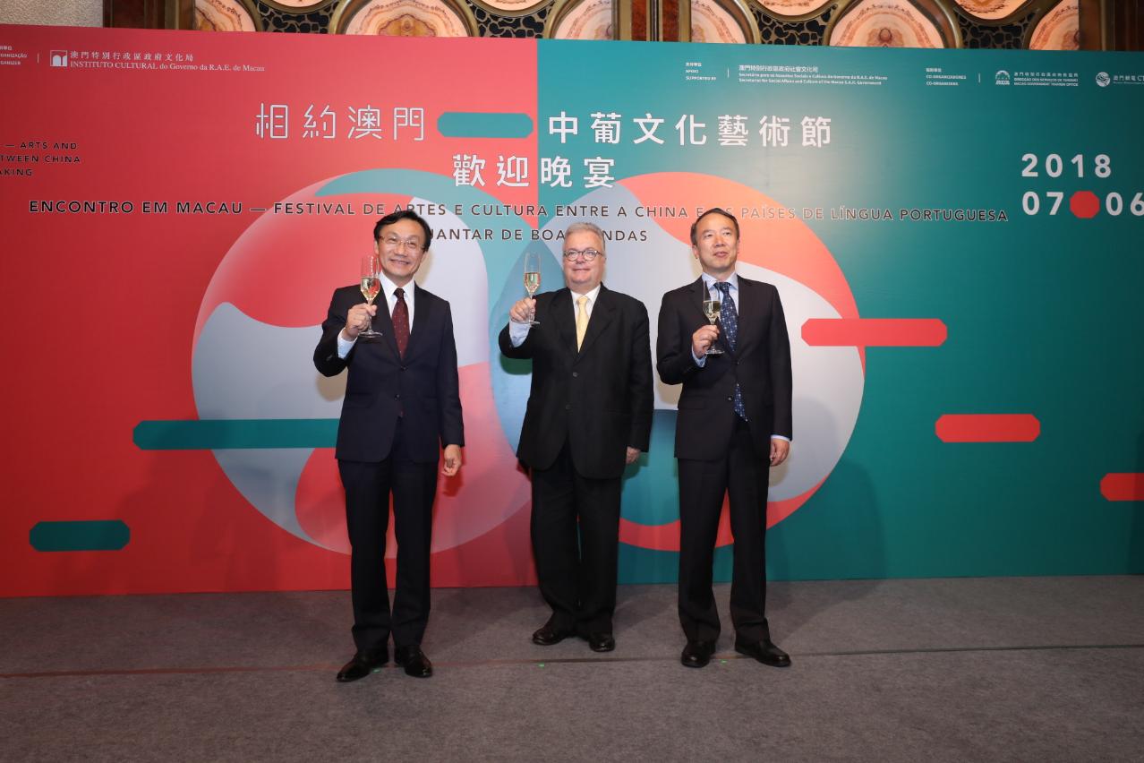 由文化局主辦的第一屆“相約澳門—中葡文化藝術節”之“中國與葡語國家文藝晚會”今日(星期五)晚上八時在澳門文化中心綜合劇院上演,邀請來自內地甘肅省及八個葡語國家的藝術表演團體,傾力演出古老樂聲和精彩歌舞,呈現多個特色文化表演,精彩紛呈,現場氣氛熱烈,掌聲連連。同一晚上,主辦單位設宴招待多位來賓及參與各項活動的藝術家和組織工作者們。