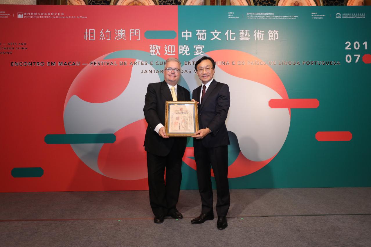 此外,藉是次舉辦“相約澳門—中葡文化藝術節”之際,主辦單位設宴招待各位來賓及所有參與各項活動的藝術家和組織工作者們。社會文化司司長譚俊榮致辭時表示,是次活動標誌著中國與葡語國家的文化藝術合作交流機制在澳門的正式確立,並將為各國之間的民心相通、合作發展作出貢獻。澳門除了擁有豐富的世界文化遺產、先進的旅遊和休閒設施外,也於去年十一月被聯合國教科文組織評為“創意城市美食之都”,展現了澳門的文化多樣性和無限創意,他鼓勵嘉賓可趁此體驗澳門的多元魅力,同時感謝所有參與者的大力支持和參與,並期望透過活動共同開啟中葡文化藝術交流的新里程,譜寫中葡文化藝術交流的新篇章。
