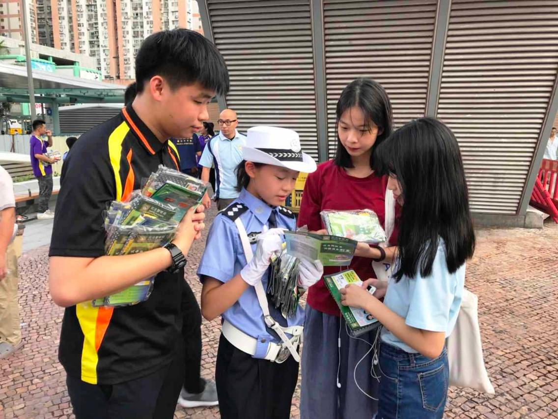 7月18日下午,司警局關注少年組人員組織十多名“滅罪小先鋒種子計劃”及“社區安全青年領袖計劃”學員,聯同到訪交流的山東省濰坊市少年交警先鋒隊學員,在毒品罪案調查處刑事偵查員帶領下到關閘口岸一帶進行預防毒品犯罪宣傳活動,向市民特別是青少年講解吸毒對身心的危害及涉毒犯罪的刑責,提醒他們須堅決拒絕毒品,如發現毒品犯罪活動,應馬上向警方舉報。