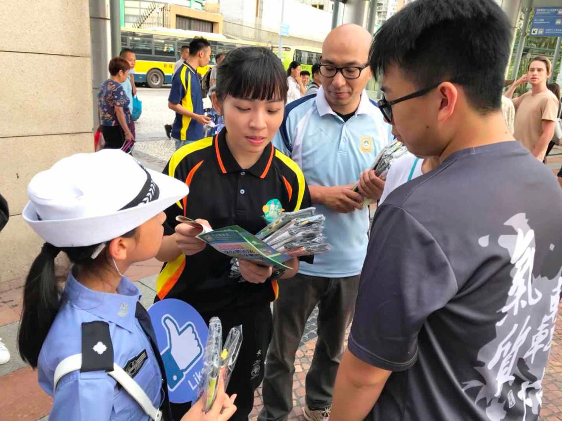 近年青少年吸毒的個案偶有發生,且呈現隱蔽化趨勢,為防止青少年於暑假期間北上濫藥,司法警察局組織“滅罪小先鋒種子計劃”及“社區安全青年領袖計劃”學員,聯同山東省濰坊市少年交警先鋒隊代表團的學員到關閘口岸一帶進行“預防青少年北上濫藥”防罪宣傳,冀加強青少年的防範意識,免受毒品侵害。