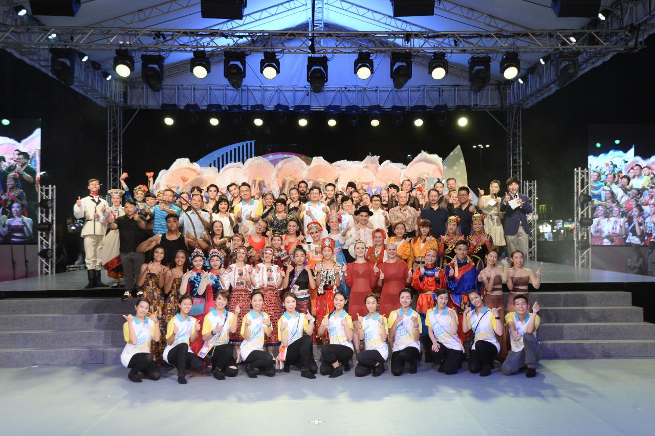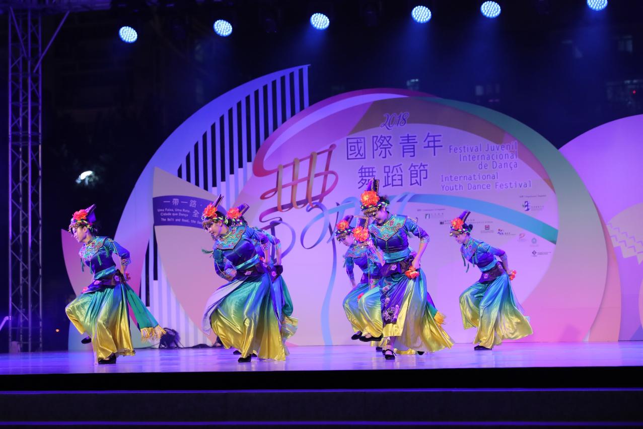 晚上舞台燈光亮起,一班來自世界各地的青年舞蹈員聯合演出《絲路西域》大型主題舞蹈,讓現場觀眾感受到彷如置身古代絲綢之路當中,並體現由青年舞蹈員團結和合作所產生的能量,在有限時間共同排練大型主題舞蹈並作演出。接着,還有拉脫維亞珀爾舞蹈團、挪威雷特士舞蹈團、中國澳門流行歌舞協會、土耳其伊斯坦堡技術大學土耳其音樂學院土耳其民族舞蹈學系、加拿大DS舞蹈青年舞團、中國澳門菜農子弟學校舞蹈隊、芬蘭他狄杜麥民間藝術團、中國四川省藝海舞蹈、斯洛文尼亞采列舞蹈論壇、波斯尼亞和黑塞哥維那代爾文塔“羅勒”青年文化藝術協會陸續出場,為觀眾帶來精彩多元的舞蹈,戶外演出在觀眾熱烈掌聲中結束。