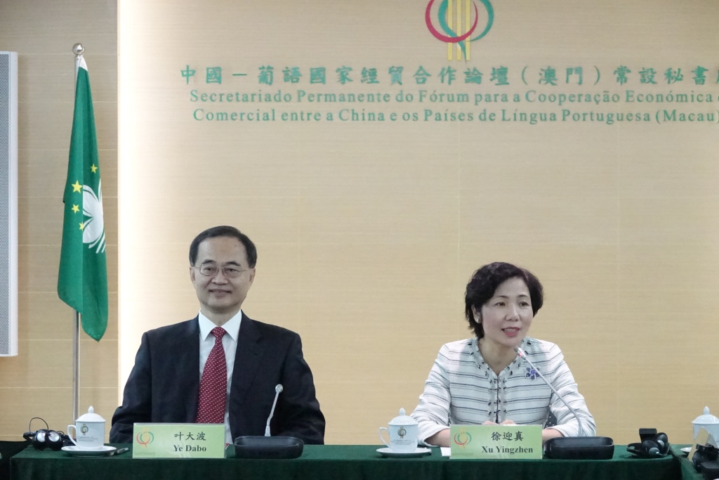 徐迎真秘書長對葉大波特派員的到來表示熱烈歡迎,並感謝外交公署對中葡論壇常設秘書處的關心和支持。秘書長簡介了中葡論壇成立以來的工作和發展,包括中國與葡語國家經貿促進、產能合作、省市間合作、人力資源合作、文化交流以及澳門平台作用等領域,同時對論壇成立十五周年系列活動及主要工作進行了概況報告,秘書處各人員亦逐一作了簡介。