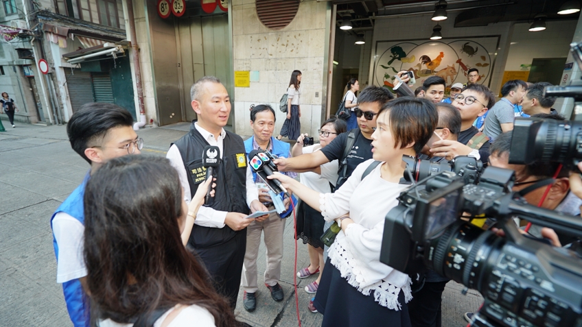 司警局聯同板樟堂營地街區坊眾互助會及“司警局大廈防罪之友”會員於8月7日下午在營地大街、草堆街、關前街、十月初五日街一帶低窪地區向居民和商戶宣傳“颱風期間風暴潮低窪地區疏散撤離計劃”及介紹防災知識,講解當颱風期間風暴潮來襲,導致低窪地區嚴重水浸時,民防單位制定的安全撤離路線及撤離時應注意的事項,並呼籲居民屆時應儘早離開地下室及地下停車場,以及儘快前往安全避險地方或就近的避險中心。