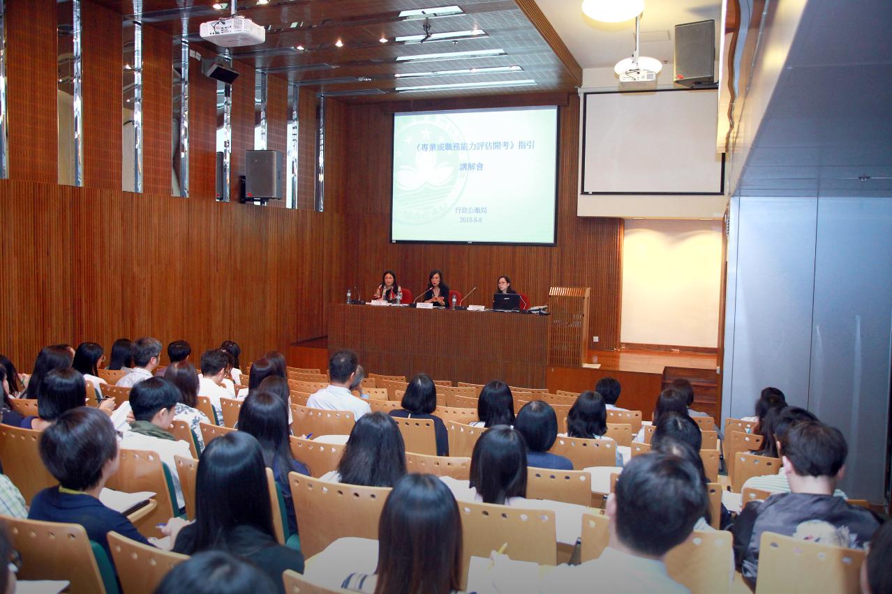 指引講解會由行政公職局副局長馮若儀、公務人員規劃及招聘廳廳長馮方丹、人員招聘及甄選處處長曾莉莉主持,對統一招聘制度中有關專業或職務能力評估開考的指引內容,作出詳細解釋並回應與會人士的疑問。