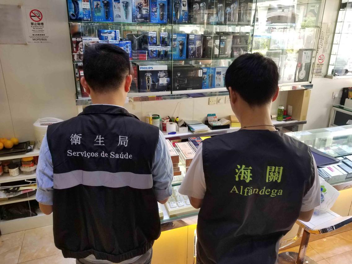 海關根據舉報,經調查後採取行動,行動中在皇朝區兩店舖内共查獲六件侵權物品及6千多支未完稅香煙,涉及金額共約澳門幣42萬,兩名店舖負責人被帶走調查。
