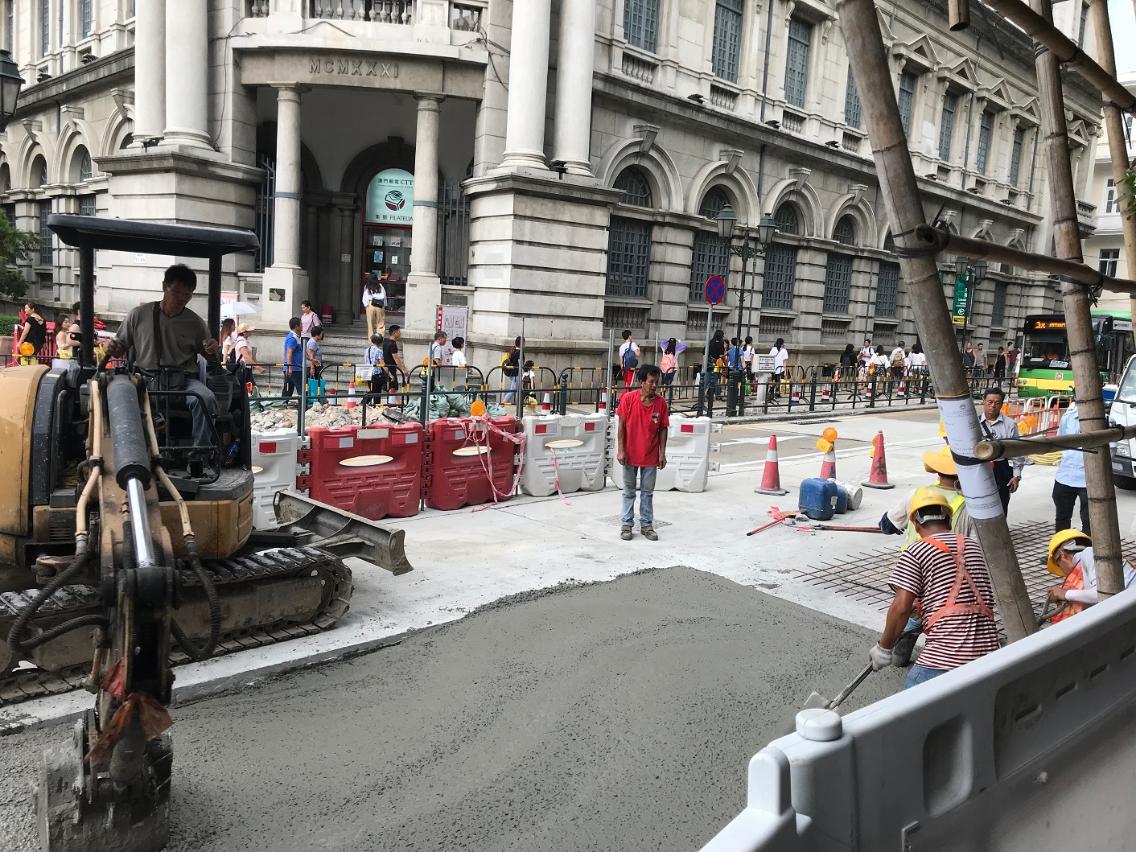 民政總署正於新馬路分階段進行維修渠道及建造雨水收集井工程,目前整體進度順利。同時,亦有協調專營公司進行鋪設管道工程,但因有專營公司之承建商重鋪部分路面質量未達要求,故民署已責成相關承建商重鋪,但不會影響預計於本月內完成之工期。