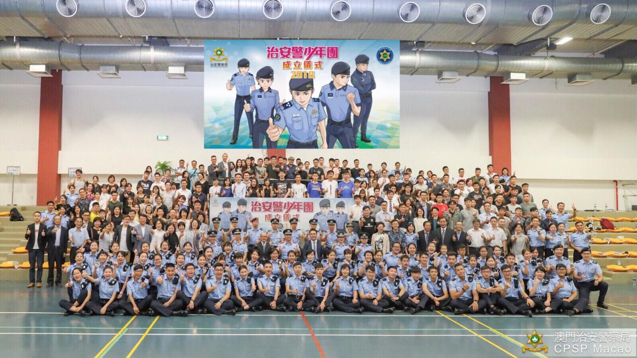 為進一步關注青年身心發展及傳承創新的警務理念,治安警察局成立了一支青年制服隊伍──「治安警少年團」,並於9月1日下午在氹仔北安出入境事務廳大樓舉行成立儀式。儀式由治安警察局梁文昌局長主持,高等教育輔助辦公室曾冠雄副主任、教育暨青年局龔志明副局長、多位治安警察局領導及主管、來自十多個社團與二十多家大專院校和中學的代表、以及團員親屬等合共超過200人應邀出席,共同見證59名團員加入「治安警少年團」。