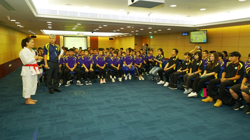 蘇瑞林又即場示範是次亞運比賽中參賽的自選套路,“滅罪小先鋒種子計劃”及“社區安全青年領袖計劃”學員們都感到十分好奇,紛紛向蘇瑞林請教空手道套路起源、競賽規則等,她都一一講解。她又勉勵學員們除了努力讀書之外,亦要勤加鍛鍊身體,希望將來有更多的青少年運動員代表澳門特區,在國際體壇上發熱發亮。