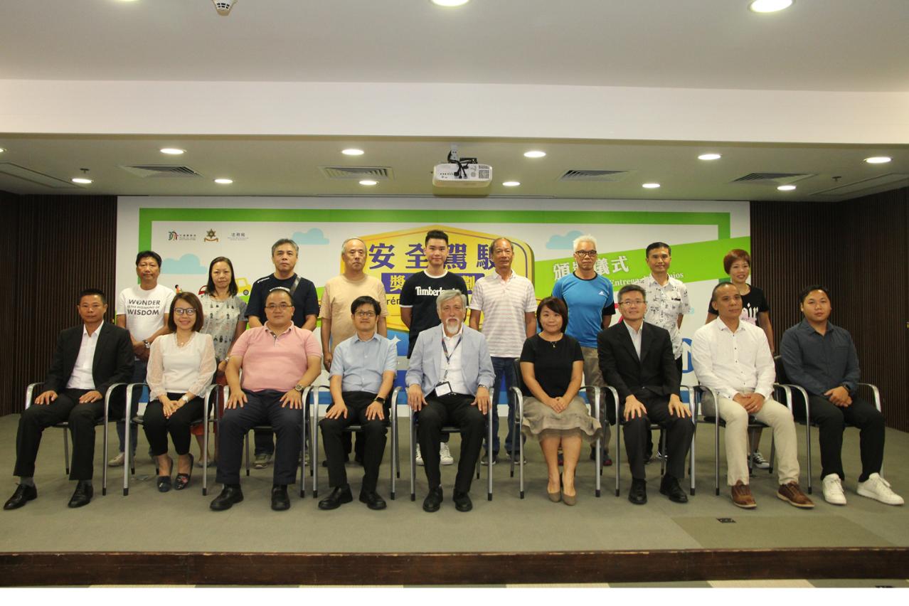 主辦單位於9月7日(周五)在交通事務局多功能廳舉行了「安全駕駛獎勵計劃2017」頒獎儀式,由交通事務局副局長賈靖龍、代副局長鄺偉卓;治安警察局交通廳代廳長李昶文、法務局法律推廣及公共關係廳廳長羅靜萍、教育暨青年局教育設備處處長黃超然、澳門街坊會聯合總會副理事長陸南德、澳門婦女聯合總會副理事長呂綺穎、工聯氹仔湖畔綜合服務中心幹事歐嘉輝及澳門學聯少年警訊活動委員會總監鄭健森,向頭三奬共九名得奬者頒發奬金,頭奬得主林艷馨可獲奬金15,000元,二奬得主梁永強、MAK CHI HUNG及ZHAO BAOXIN各得獎金8,000元,三奬得主季秋玲、關文雄、CHU KIN、LO PING SUM BENSUM及IU WAI IN各得獎金3,000元,餘下得獎者已於早前陸續領獎。