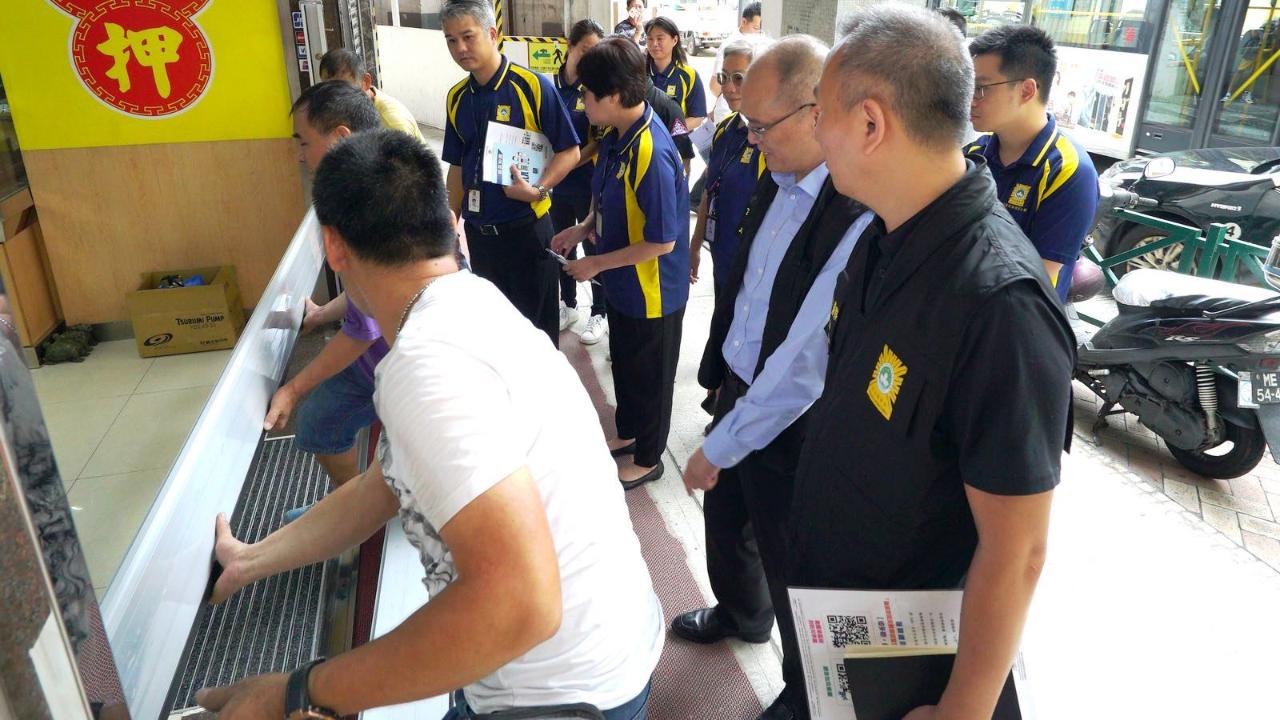 今日上午,司警局陳堅雄副局長、刑事偵查範疇的博彩及經濟罪案調查廳梁文照廳長,以及後勤支援範疇的管理及計劃廳楊春麗廳長,帶領人員前往司打口、沙梨頭一帶進行防風防災巡查,接觸區內商舖負責人及居民,瞭解社區應對颱風的準備情況,並就防災措施作出指導及建議。