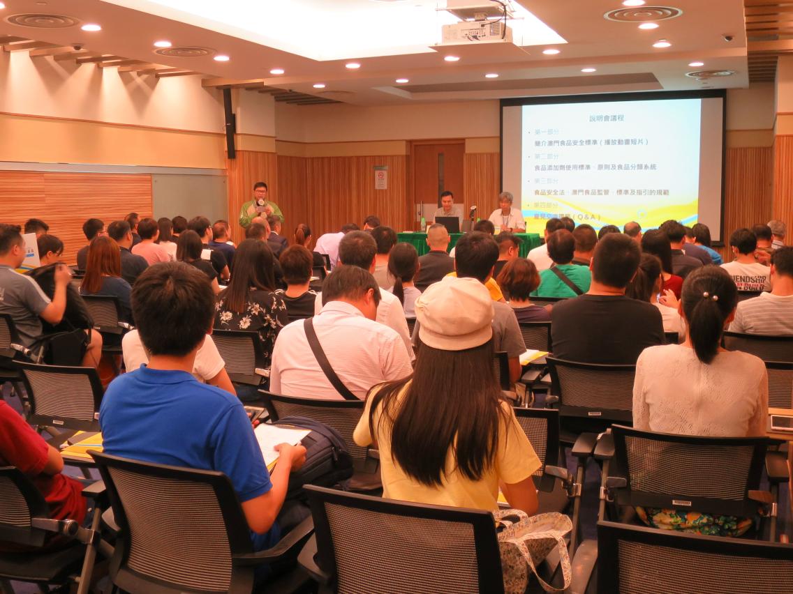 為加強本澳手信食品及中西糕餅行業對食安標準及管理之認識,民政總署、經濟局及澳門廠商聯合會於9月7日舉辦“澳門食品安全標準制定及執行說明會”,簡介澳門食品安全標準之制定,重點說明食用色素及甜味劑的使用範圍及原則,並向業界分享個案,解說營運過程中須遵守的衛生要求,以及《食品安全法》等法律規範。
