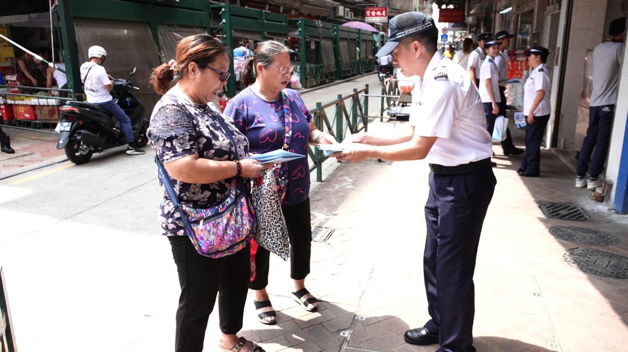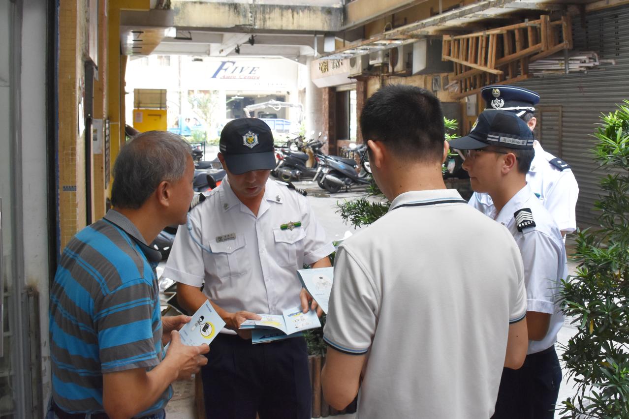海關人員今日分別前往河邊新街、媽閣及下環一帶,向居民及商戶派發“颱風期間風暴潮低窪地區疏散撤離計劃”宣傳品,講解風暴潮的分級、撤離程序及避險中心位置等資訊,期望有關計劃啟動時,市民能配合相關部門指示,安全有序地進行撤離。海關亦提醒市民,颱風來臨前,應預先貯備足夠的物資及做好防風措施,包括鎖好門窗、加固家中物件及將物品移至高處,同時應密切留意電台、電視台的消息,以掌握政府發佈的最新資訊,從而作出應對。