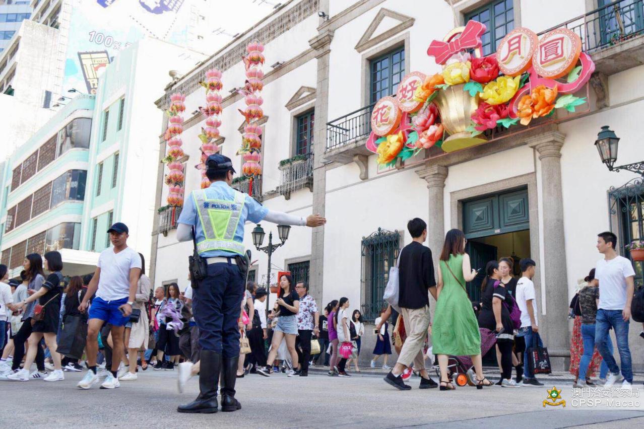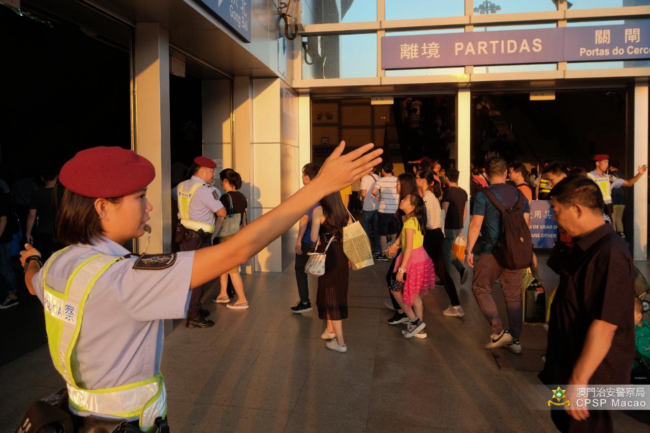 國慶黃金周假期吸引大量旅客來澳,治安警察局於各出入境邊境站和旅遊旺區部署警力,並因應人流情況,先後於10月3日、4日、5日及6日的下午時段,在大三巴實施人潮管制措施,以確保旅遊旺區的秩序和公眾的安全。總結整個十‧一假期,得到市民和旅客對警方工作的理解及配合,本澳的市面及各口岸通關秩序良好,交通暢順。