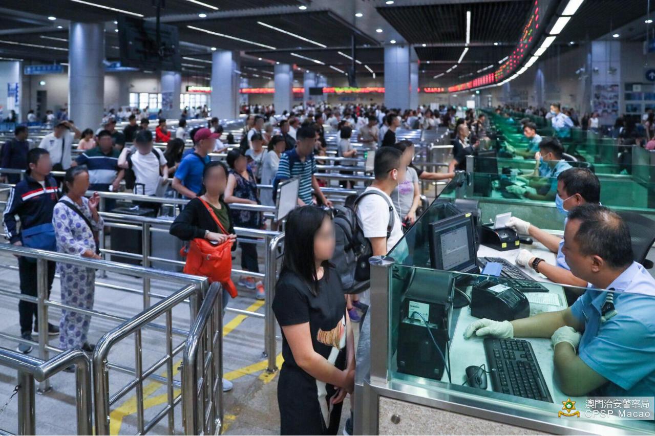 出入境方面,由10月1日至7日,經本澳各邊境站出入境的人次達378萬,較去年的350萬增加約8%,當中經關閘邊境站的出入境人次有286萬;出入境人次的高峰出現在10月5日,單日達57萬人次出入境。