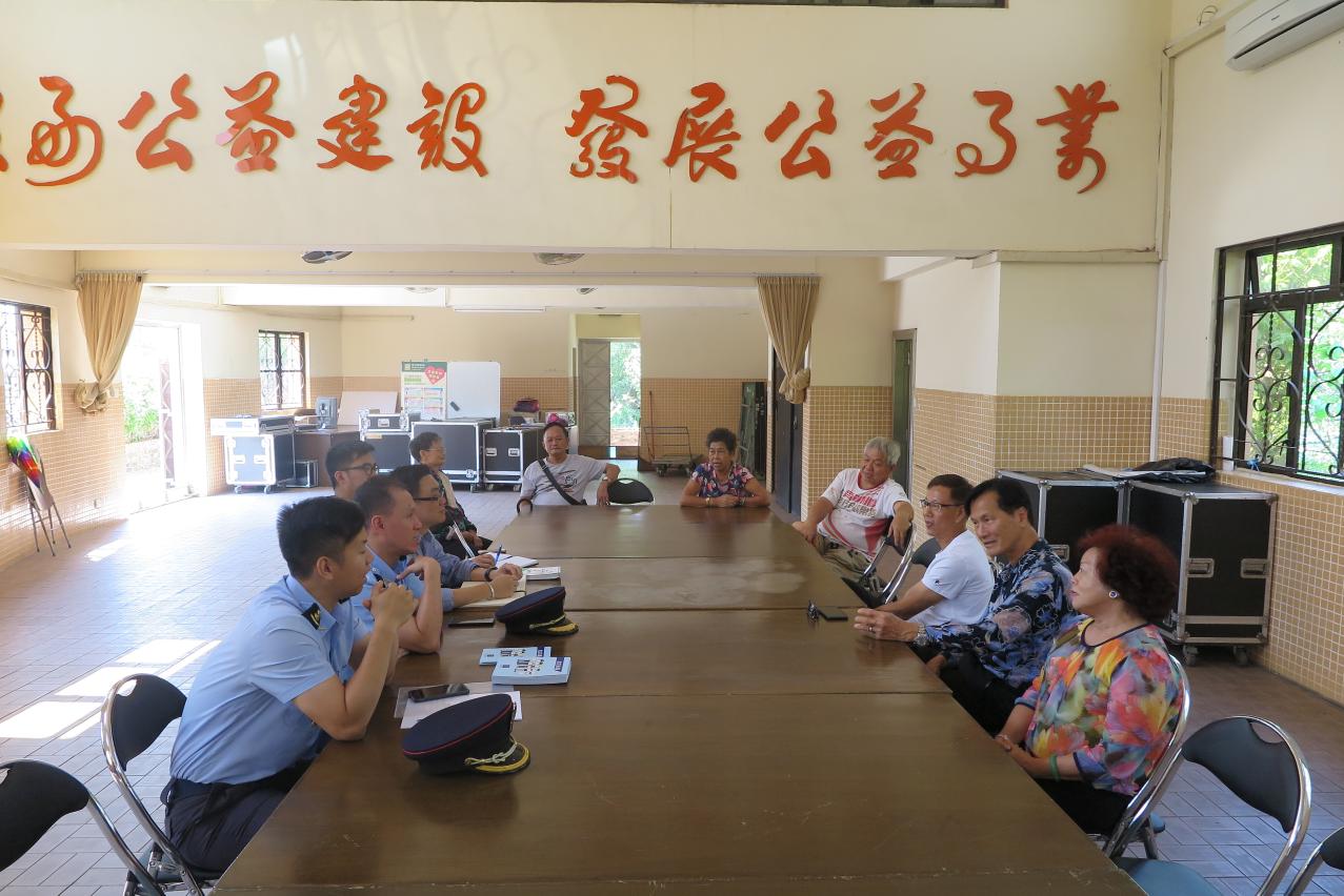 出席講座的人員有本校陳國棠副消防總長、陳浩然副一等消防區長及社會工作局避險安置組職務主管龍偉雄、關志文技術員。在活動中,人員向路環居民講解前往避險中心時的注意事項、在日常生活中儲備應急物資的重要性、應急包的準備及建議配備、選擇撤離路線的考慮要素等,以應付突如其來的災害;而社會工作局人員除了介紹各區避險中心的地點、中心內的設施、物資的儲備以及中心開放期間的運作安排外,同時聽取居民有關避險中心的配備和開放時間等安排之意見。
