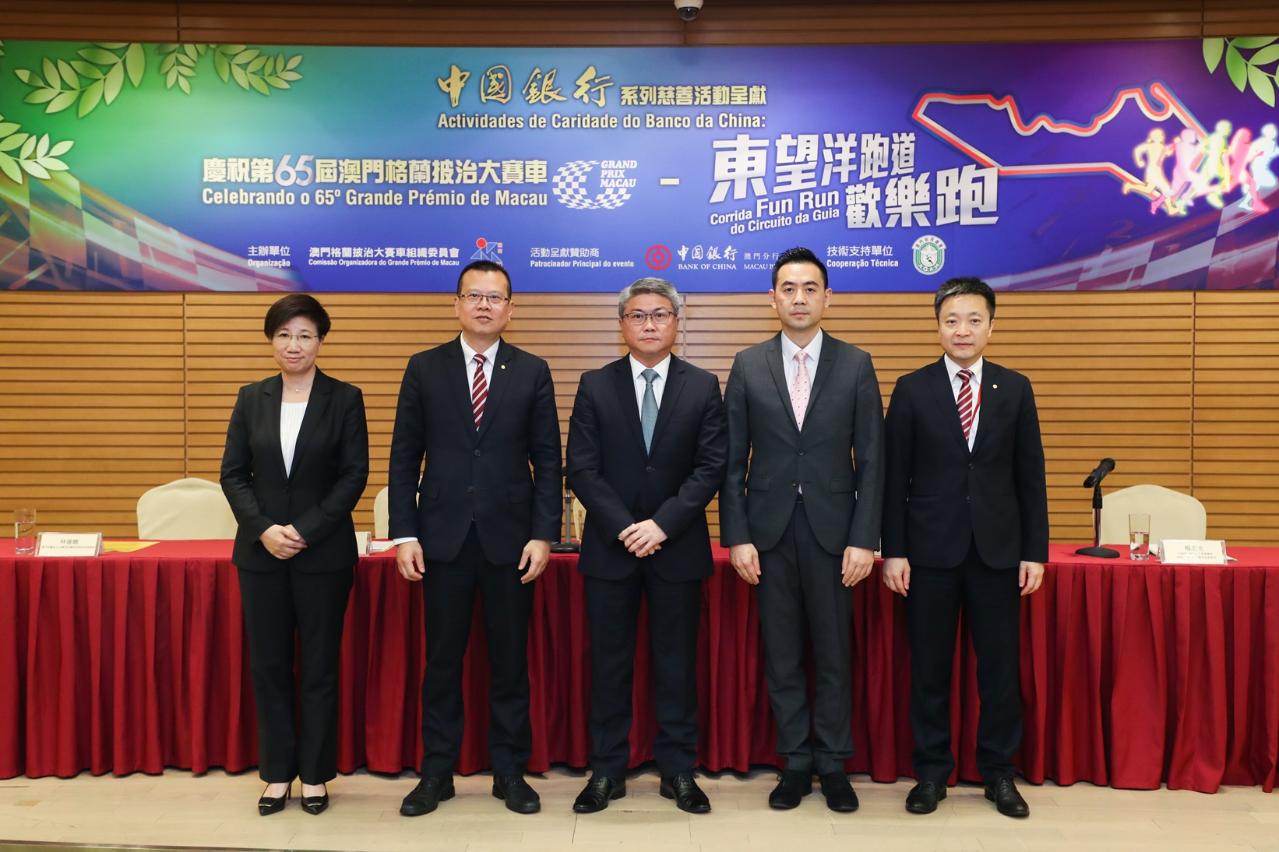 適逢今年澳門格蘭披治大賽車舉行至第65屆,為慶祝賽事邁向新的里程碑,大賽車組委會舉辦了一系列的慶祝活動,以進一步增強澳門格蘭披治大賽車與市民之間的聯繫,當中包括:中國銀行系列慈善活動呈獻 “慶祝第65屆澳門格蘭披治大賽車-東望洋跑道歡樂跑”。東望洋跑道是國際知名的賽道,舉辦活動的目的是為了讓市民共同參與並親身體驗東望洋跑道的魅力,感受於東望洋跑道內奔馳及衝刺的新鮮感。是次由大賽車組委會主辦、中銀呈獻贊助的東望洋跑道歡樂跑,將體育及慈善的元素相結合,通過公眾參與和身體力行的方式來傳承和弘揚澳門樂善好施、包容共濟的優秀人文價值和優良傳統,為社會帶來歡樂,推動本地體育及慈善事業的發展。本年中國銀行澳門分行還將向六間本地教育及體育機構、八間本地大專院校、以及四十一間本澳中小學,共計五十五個機構與社會服務團體進行專項活動贊助。
