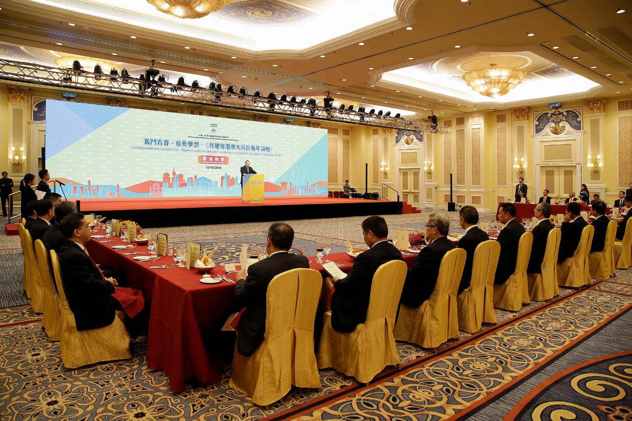 “奮鬥青春、放飛夢想-共建粵港澳大灣區青年論壇”明(13)日開幕,特區政府今(12)晚設宴歡迎來澳參與論壇活動的嘉賓及大灣區各兄弟城市的政府領導和青年代表。行政長官崔世安表示,希望藉着此次青年論壇的舉辦,促進大灣區各地的朋友們與澳門各界,特別是澳門青年增進交流、促進合作、共商發展,共同為推動粵港澳大灣區建設貢獻力量。