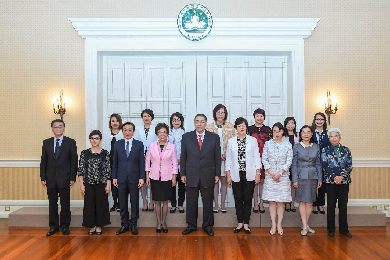 行政長官崔世安今(16)日下午在政府總部會見澳門婦女聯合總會會長賀定一及領導層,就制定2019年財政年度施政報告聽取意見及建議。