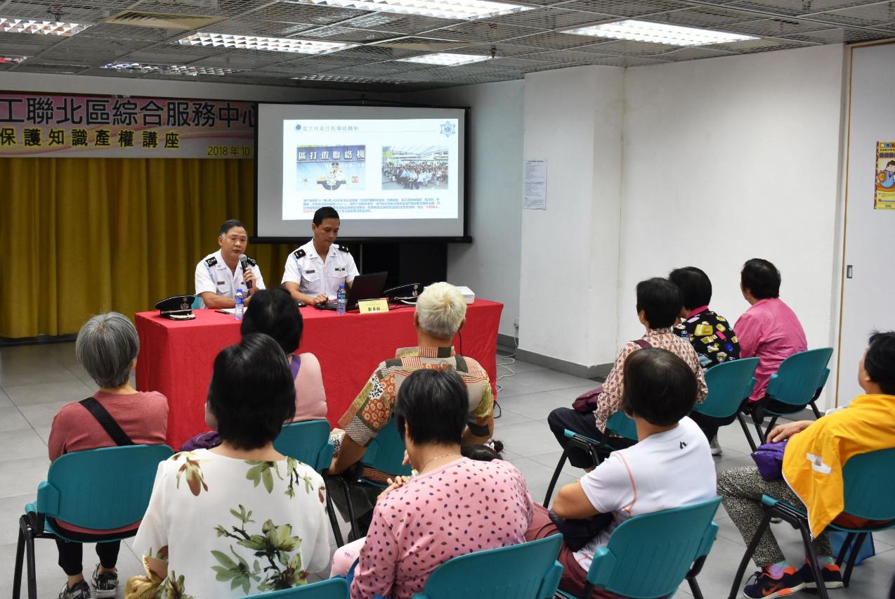 澳門工會聯合總會是「社區打假聯絡機制」的參與成員之一,一直積極配合海關在知識產權範疇方面的普法工作,並就社區侵權情況為海關提供情報。海關於今日(19日)到工聯北區綜合服務中心舉辦講座,向該會成員介紹澳門海關在知識產權方面的執法情況、相關的法律規定,以及解答有關知識產權方面的問題。