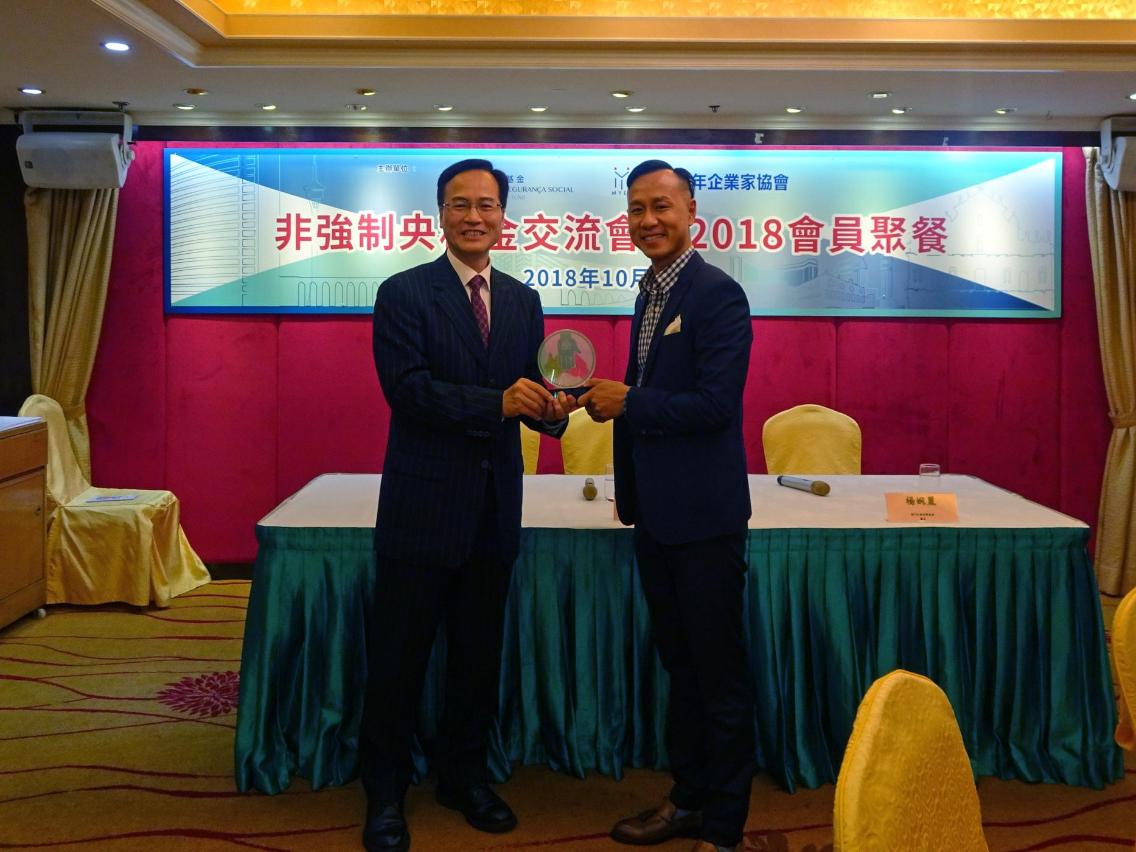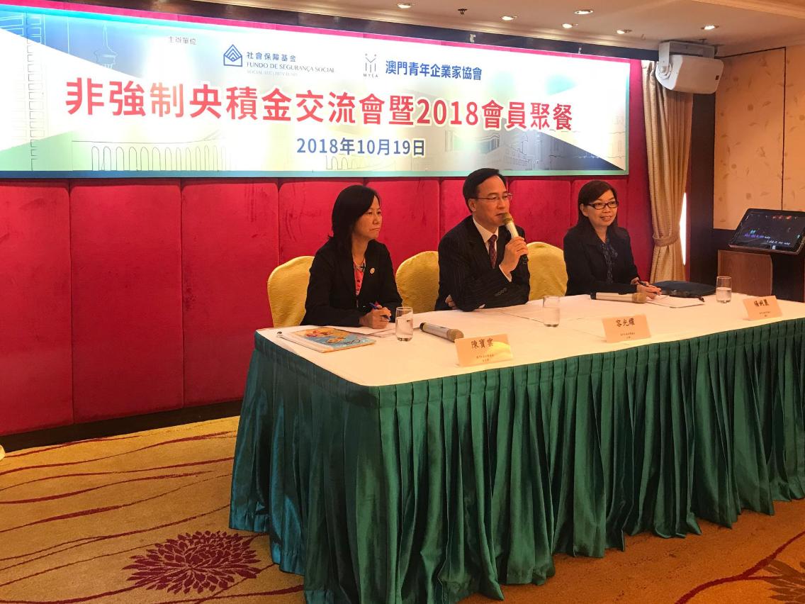 為加深青年僱主對非強制性中央公積金制度的認識以及鼓勵其參與,社會保障基金行政管理委員會主席容光耀日前走訪澳門青年企業家協會,以“參與央積金 退休更安心”為主題,與該會成員就非強制央積金的制度內容和最新情況進行交流。