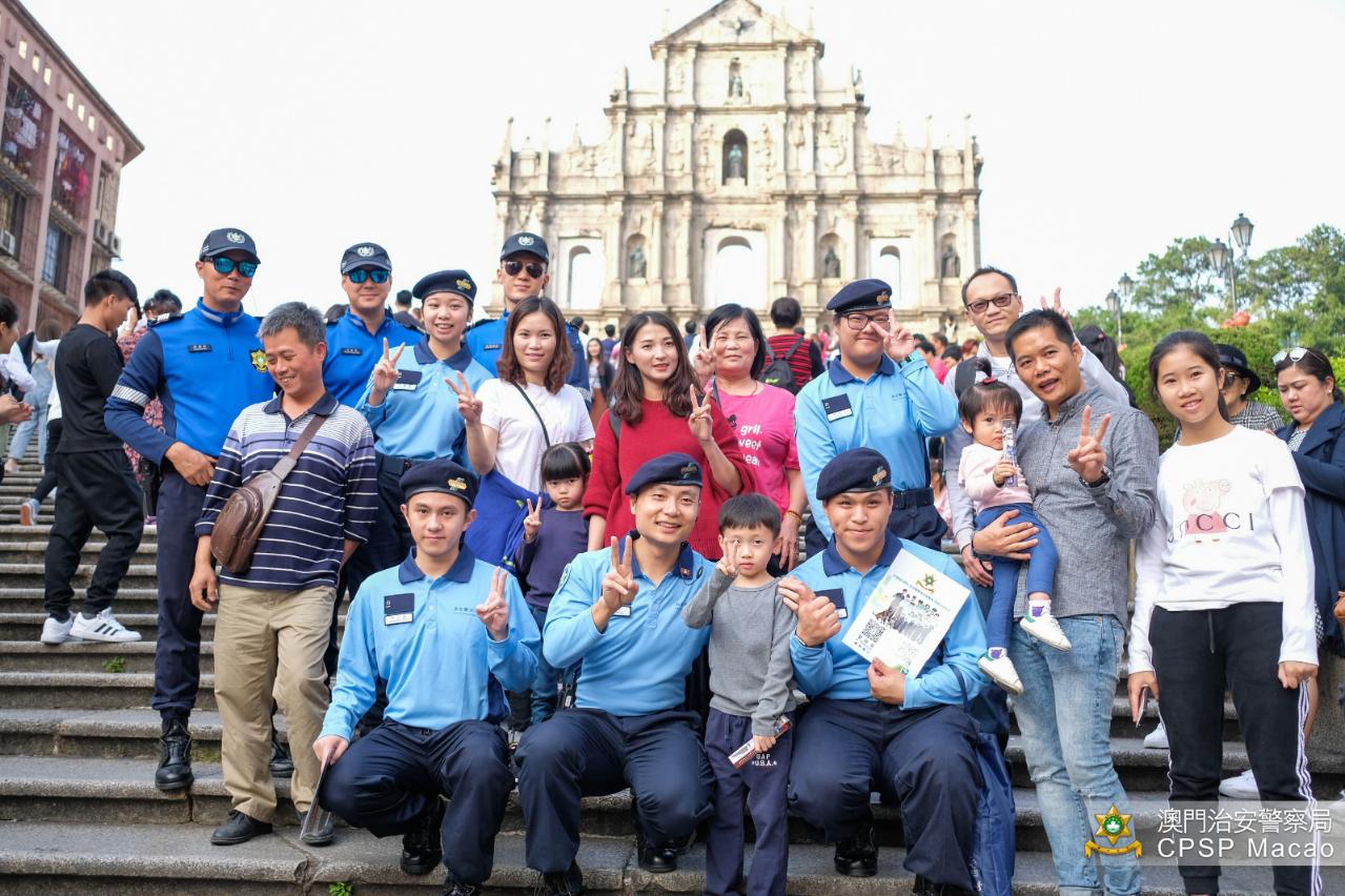 少年團與旅遊警察在大三巴合照