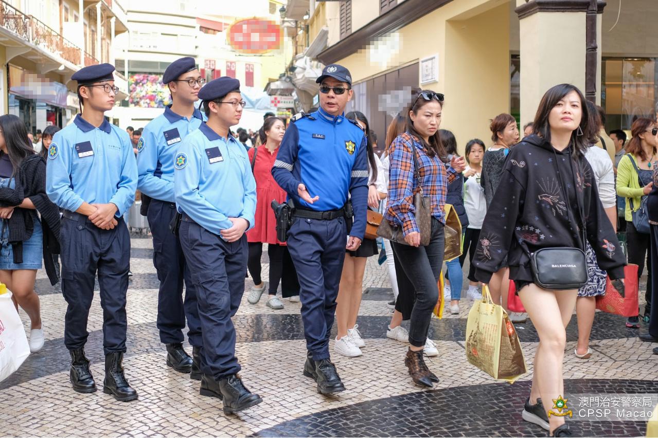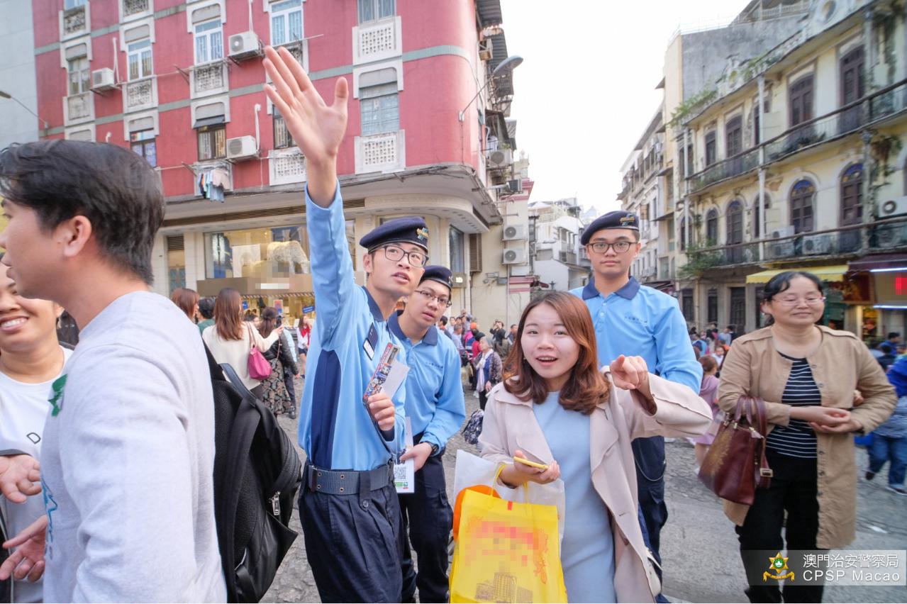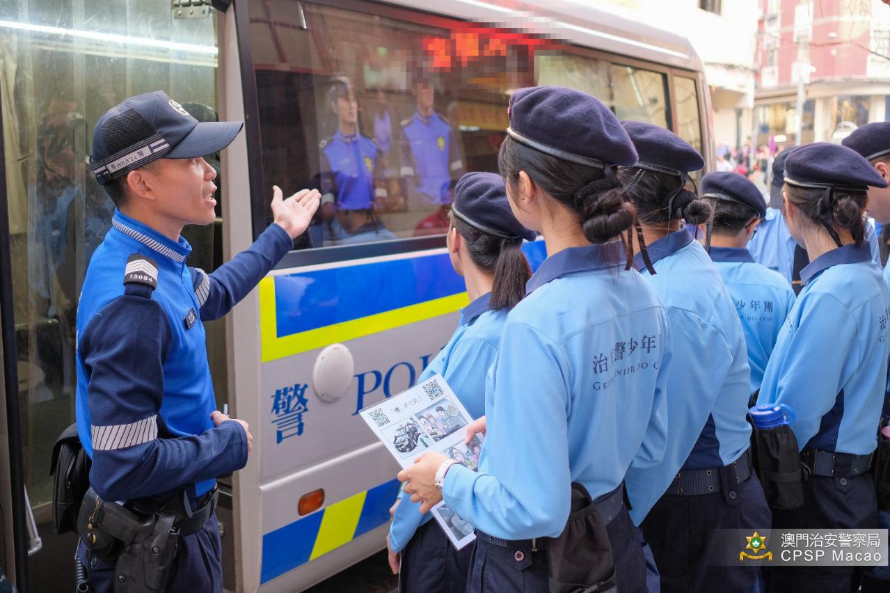 24日,治安警少年團到議事亭前地及大三巴一帶旅遊區,協助旅遊警察服務旅客、與旅遊警察並肩同行。