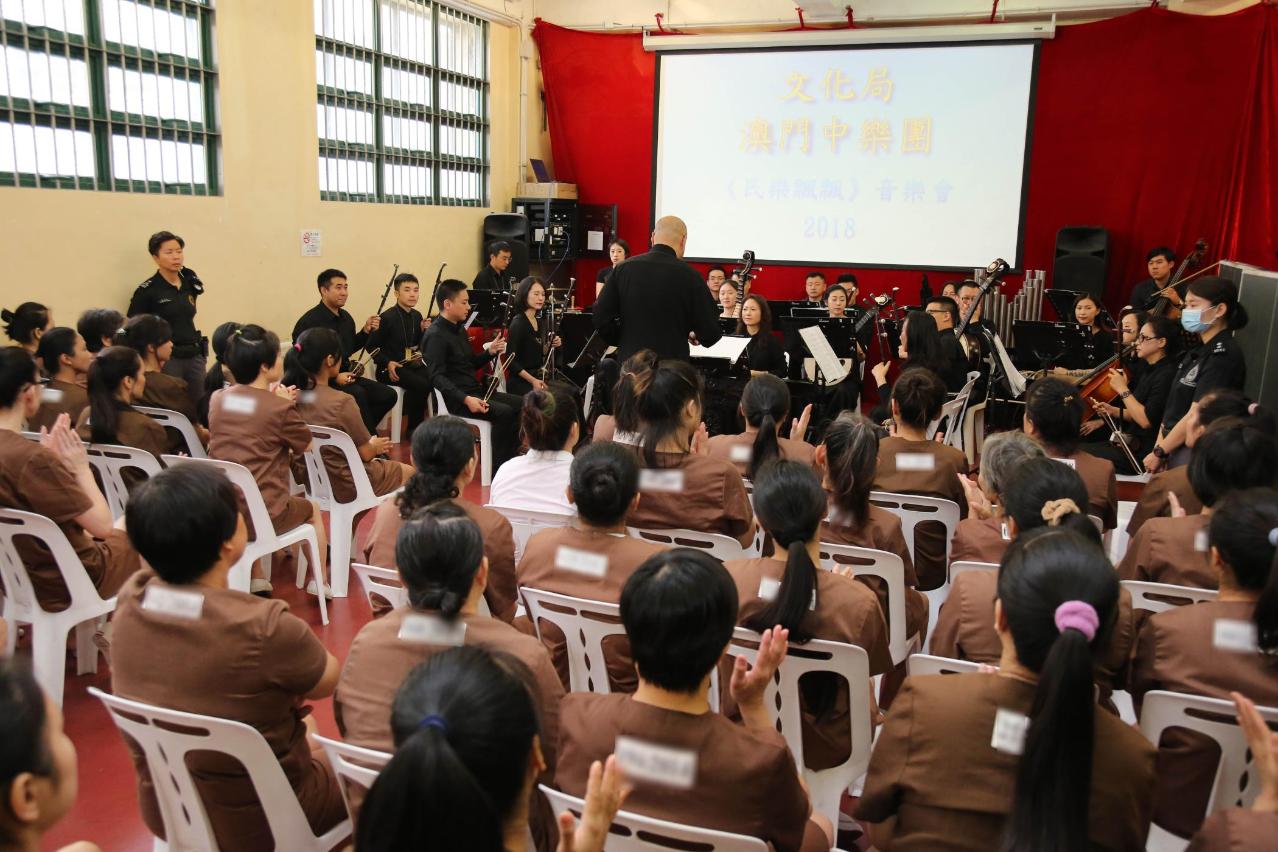 文化局澳門中樂團日前(11月14日)於澳門監獄順利舉行兩場音樂會,由樂團音樂總監兼首席指揮劉沙執捧,帶領40位中樂團的樂師進行精彩演出。是次音樂會演奏多首經典的中樂樂曲,其中劉沙親自向觀眾講解有關中樂的知識,獲得正面迴響。