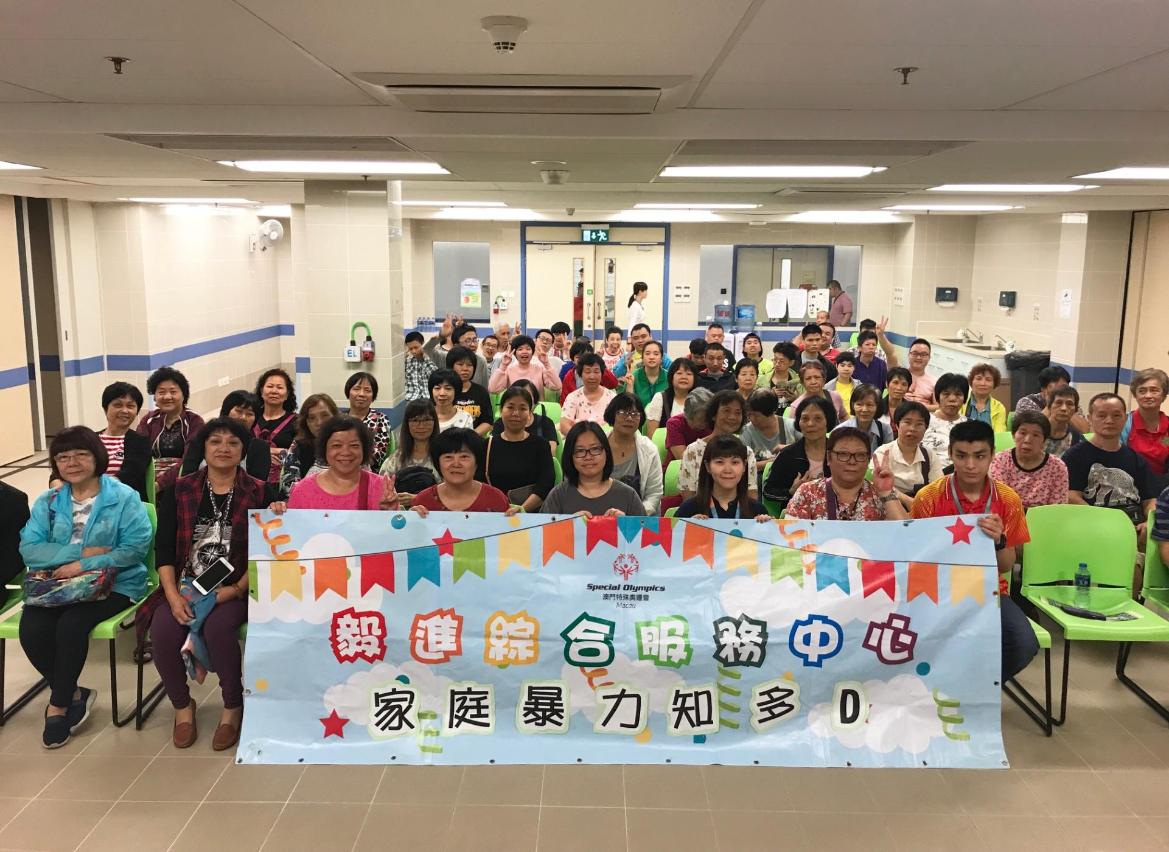 社會工作局從2018年10月9日至11月28日期間舉辦的11場家暴普法講座,對象 7場為長者、4場為復康人士,共有718人參與。目的讓參加者認識預防及打擊家庭暴法、學習預防及應對家暴問題、以及掌握求助的資訊和途徑,培養公民意識,有助促進家庭和睦。