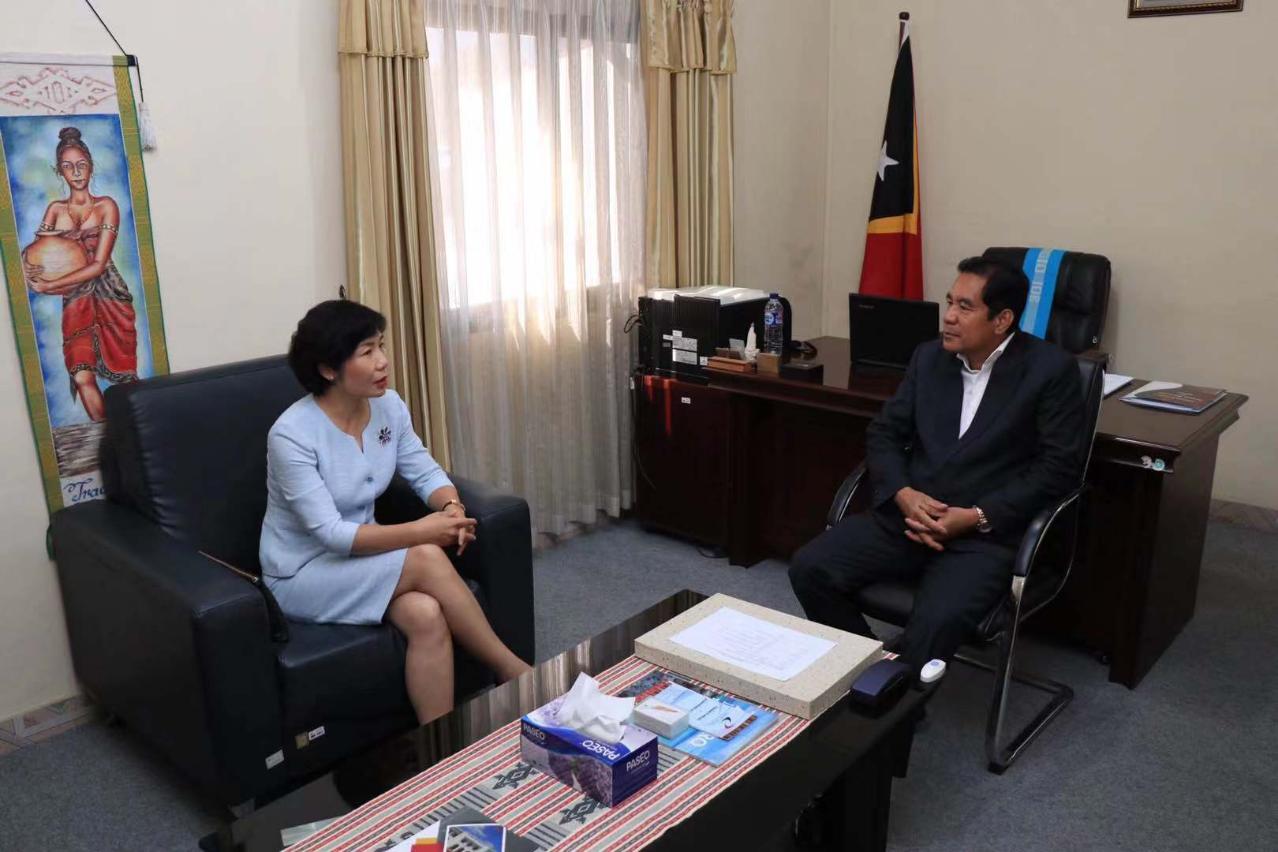 12月4日,代表團拜會東帝汶貿易投資促進局主席達席爾瓦。徐迎真秘書長感謝TRADEINVEST作爲中葡論壇在東帝汶的聯絡員單位對論壇工作的支持,感謝達席爾瓦主席今年3月赴澳門出席論壇15周年座談會,爲論壇的發展提出了具有建設性的建議。隨後介紹了秘書處近期的工作情况,並希望與東方共同努力,加强貿易投資促進工作,爲第六届部長級會議的召開預作準備。達席爾瓦主席對代表團訪東表示歡迎,表示TRADEINVEST將繼續做好協調和配合工作,積極參與論壇活動。