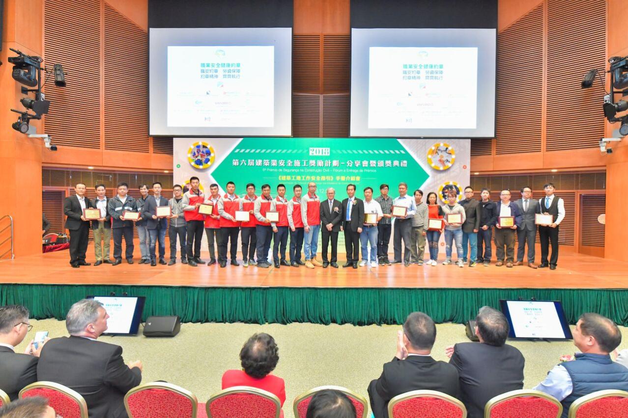 由勞工事務局主辦的「2018第六屆建築業安全施工獎勵計劃」分享會暨頒獎典禮今(6日)舉行,今屆共有23間公司、27個地盤、40名安全管理人員和95名工友參賽,反應踴躍。主辦單位勞工事務局、合辦單位土地工務運輸局、建設發展辦公室、運輸基建辦公室、建築業和職安健團體、參賽地盤的業主和監理及顧問公司,以及建築工程界人士及多名管理人員、工友等出席。頒獎禮上,勞工局並與13個得獎項目的建築公司簽署“職業安全健康約章”,並介紹今年編制的《建築工地工作安全指引》手冊。