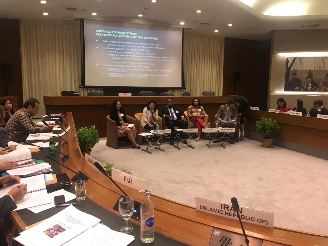 聯合國經濟及社會理事會對於澳門在防治吸毒人群感染愛滋病的工作上所取得進展予以肯定,因此邀請社會工作局派員於是次會議中分享本澳在防治吸毒者愛滋病感染的工作經驗與成效。
