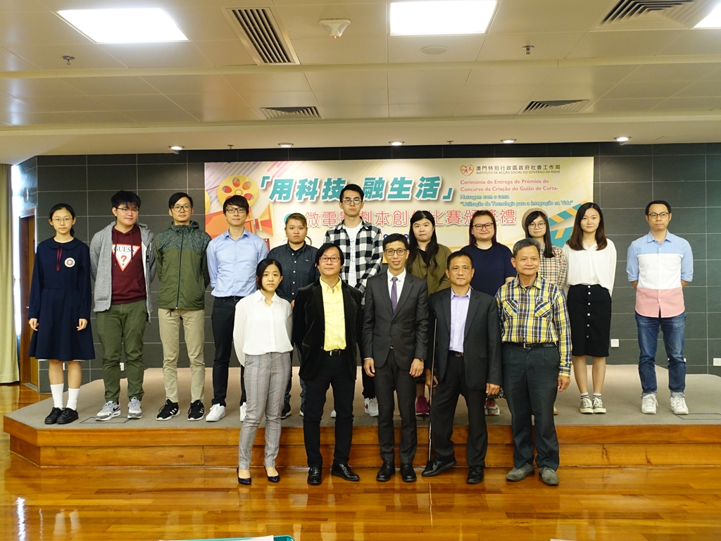 社會工作局日前舉辦了「用科技,融生活」微電影劇本創作比賽頒獎禮,除了向得奬者頒發獎項外,亦邀請了評審分享對參賽作品的評語,以及三甲得獎者分享創作心得。